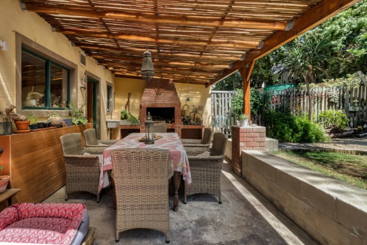 A deep, shaded covered patio with a built-in braai. A tranquil garden with multiple seating and lounging areas. A raised firepit zone perfect for evening gatherings A spacious lawn ideal for pets, kids, gardening, or future landscaping ideas