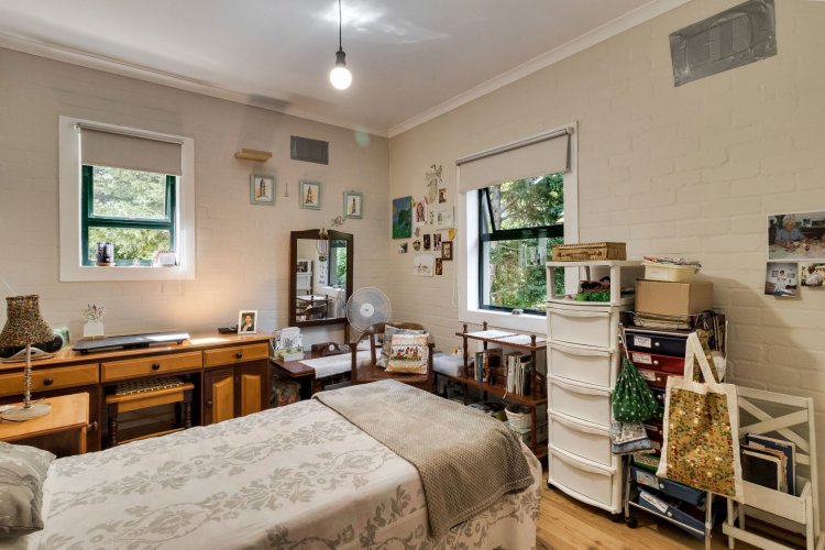 Upstairs, there are three bedrooms, with a generous main bedroom with bright leafy views.