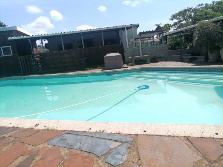 The home features a fully fitted kitchen with a scullery , ideal for convenience and functionality. Step outside to a large swimming pool and entertainment area , perfect for hosting and relaxation.