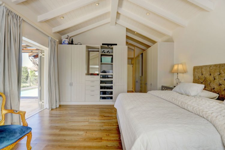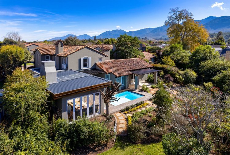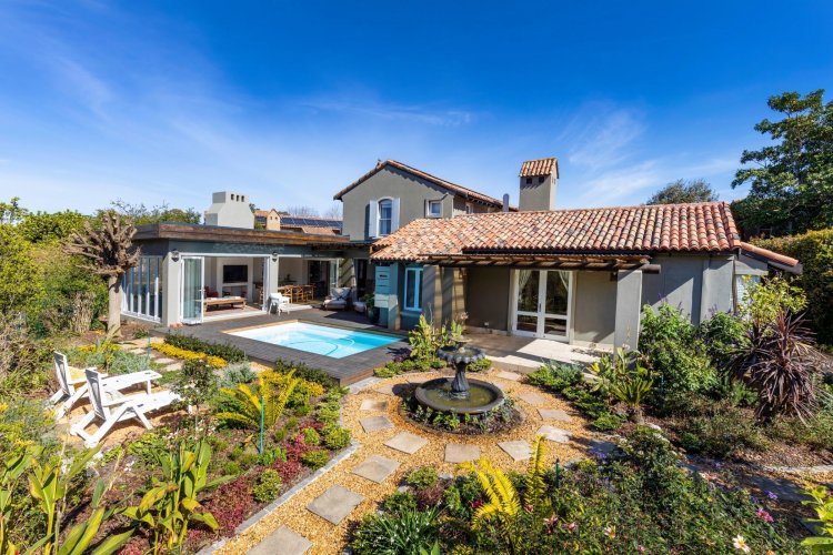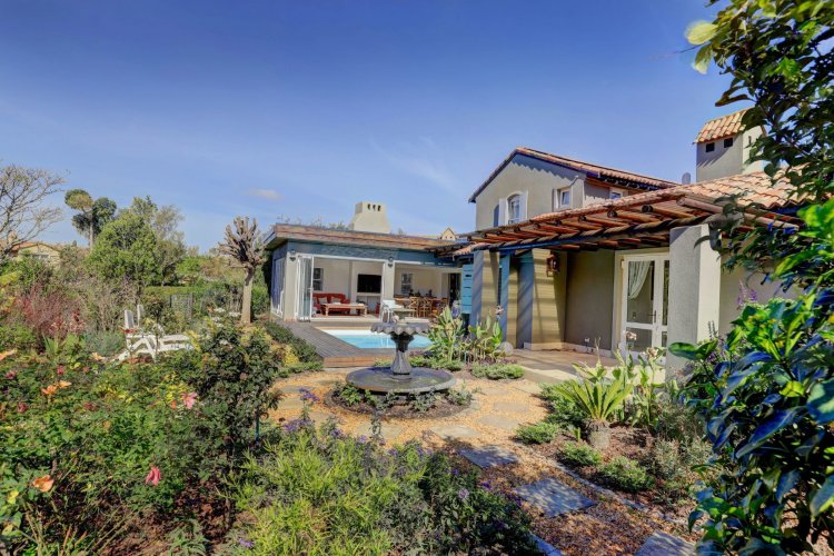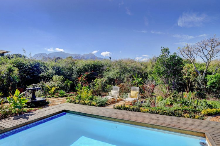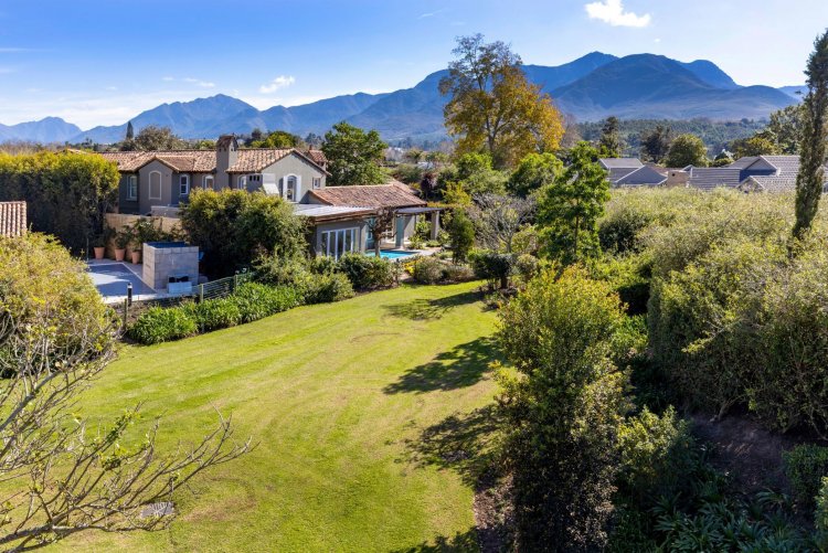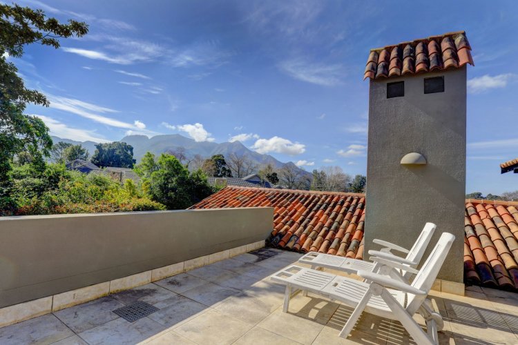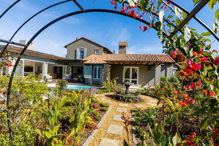 The ground-floor master suite opens to its own private patio and lush garden, while mountain views and manicured surrounds complete the picture.