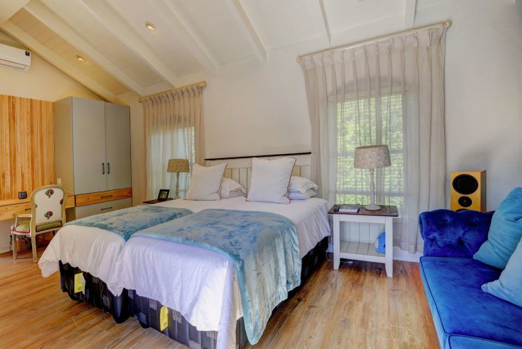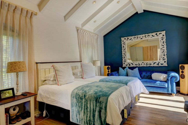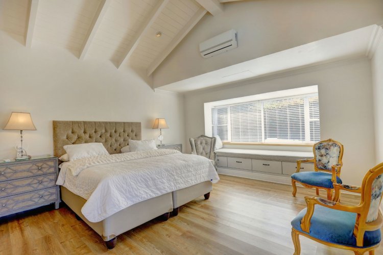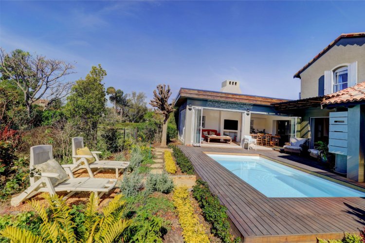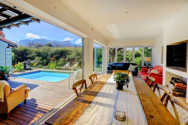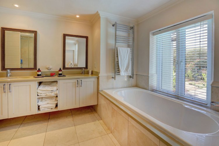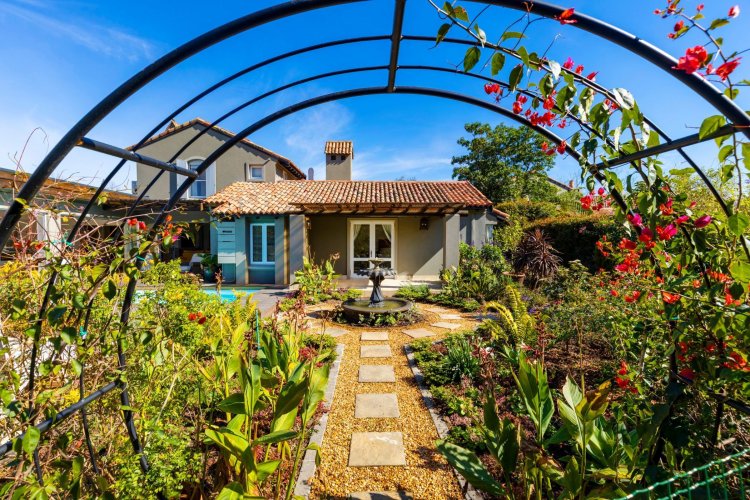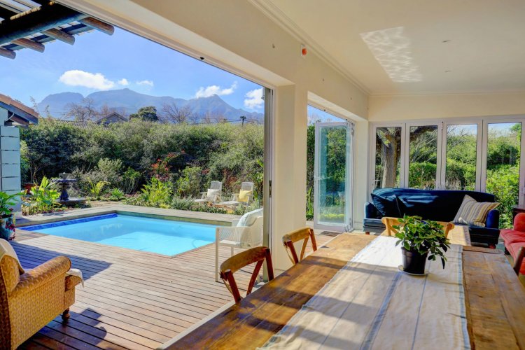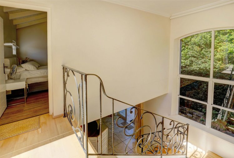 The ground-floor master suite opens to its own private patio and lush garden, while mountain views and manicured surrounds complete the picture.