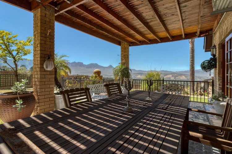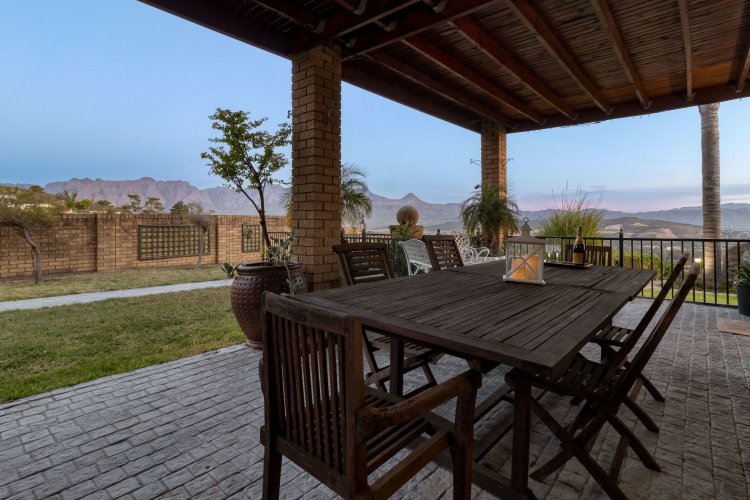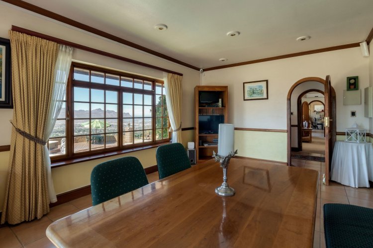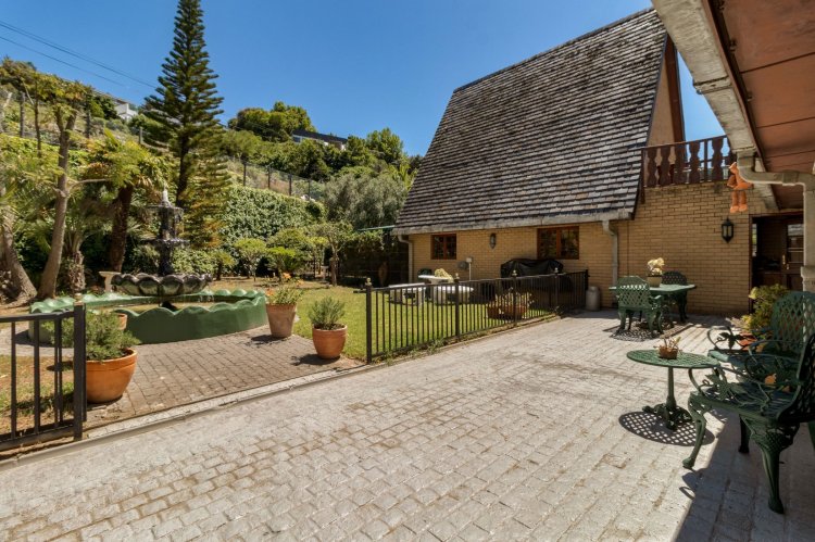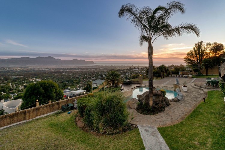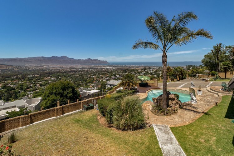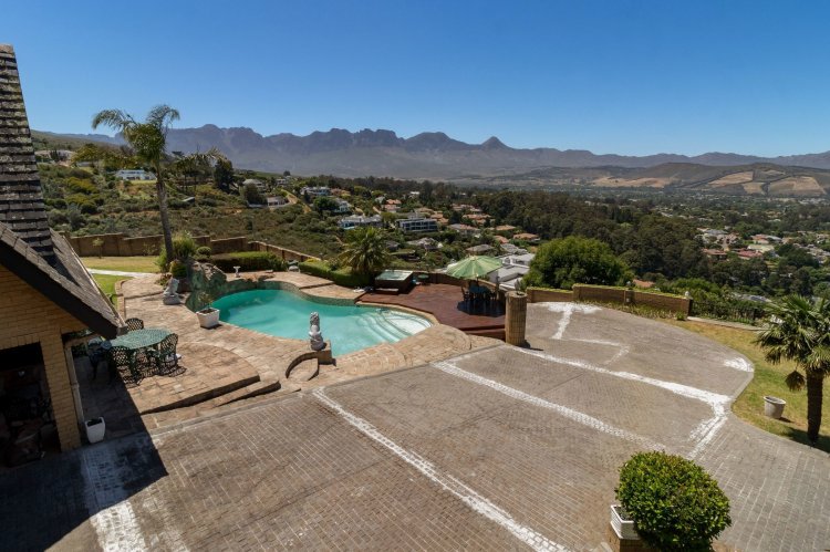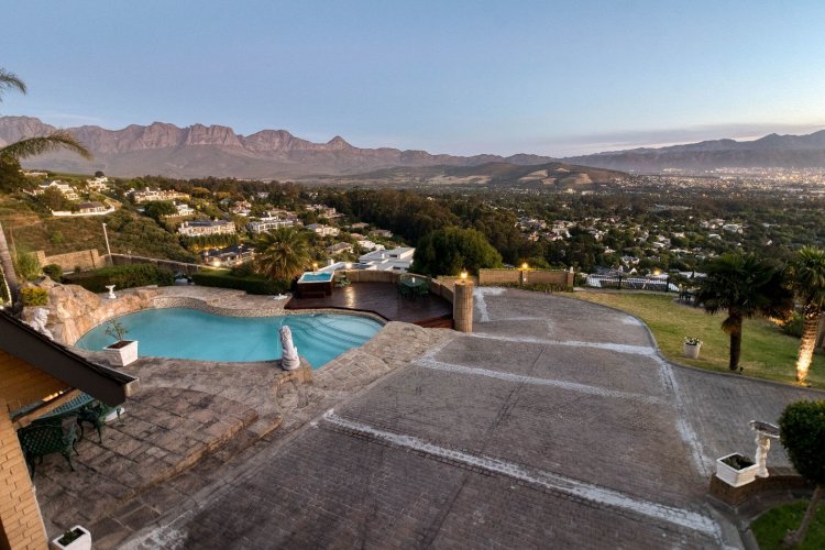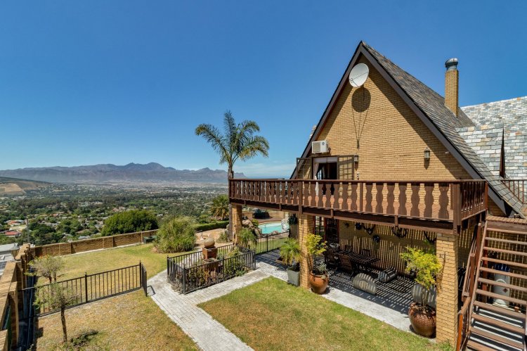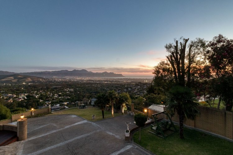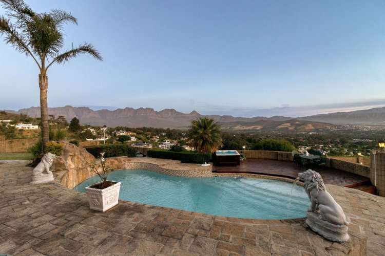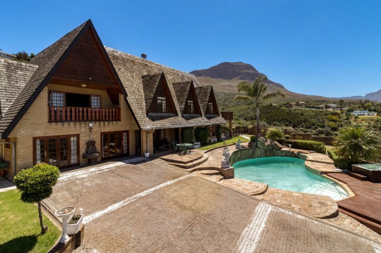 Imagine waking up each morning to a world bathed in soft golden light, where the sun rises over the Helderberg mountains and dances across the shimmering sea below. Perched high on a secluded hilltop in Spanish Farm, this enchanting estate pairs old-world charm with extraordinary natural beauty, creating a home that feels like a quiet retreat far from the rush of everyday life. Set on an expansive 2,900m² of manicured grounds, the property feels both generous and intimate—its character-filled architecture blending beautifully with the surrounding landscape. The main residence, a spacious 550m² home, exudes warmth from the moment you step inside. Four well-proportioned bedrooms offer peaceful sanctuaries, two of them complemented by private en-suite bathrooms. A further family bathroom ensures comfort for everyone. The interiors balance modern convenience with a sense of timeless charm. Climate-controlled living spaces keep the home comfortable throughout the seasons, while large windows frame the sweeping mountain and sea views. Sunlight pours into the open-plan living areas, giving the home a tranquil, inviting presence—perfect for gatherings or quiet evenings by the fire. Outside, the estate reveals its most captivating features. A sparkling, resort-style pool sits at the heart of the garden, perfectly positioned to take in the iconic Helderberg scenery. Whether you're enjoying a morning swim, hosting sunset cocktails, or simply unwinding on the terrace, this outdoor space feels like a private holiday escape. Nearby, a separate flat offers versatile accommodation—ideal for guests, extended family, staff, or a private work-from-home suite. For moments of complete relaxation, the Jacuzzi invites you to linger outdoors a little longer, surrounded by the sound of nature and the glow of the setting sun. The property's rolling lawns, established gardens, and multiple seating areas create endless corners to enjoy the serenity of your surrounds. Car enthusiasts and entertainers alike will appreciate the remarkable 500m² underground garage—large enough to accommodate up to 24 vehicles. With sophisticated climate-control systems, it offers exceptional protection and care for your collection, as well as ample space for storage or additional uses. This home is more than a residence; it's a lifestyle—an opportunity to own a rare piece of Helderberg's elevated beauty. With unparalleled privacy, sweeping vistas, and a sense of romance woven into every corner, this Spanish Farm property is an exceptional haven for families, dreamers, and anyone seeking a life lived close to nature, yet wrapped in luxury.