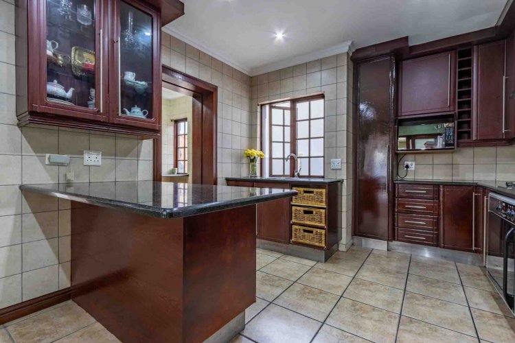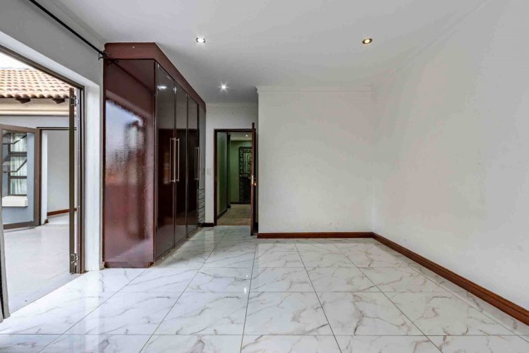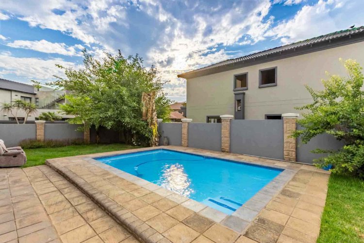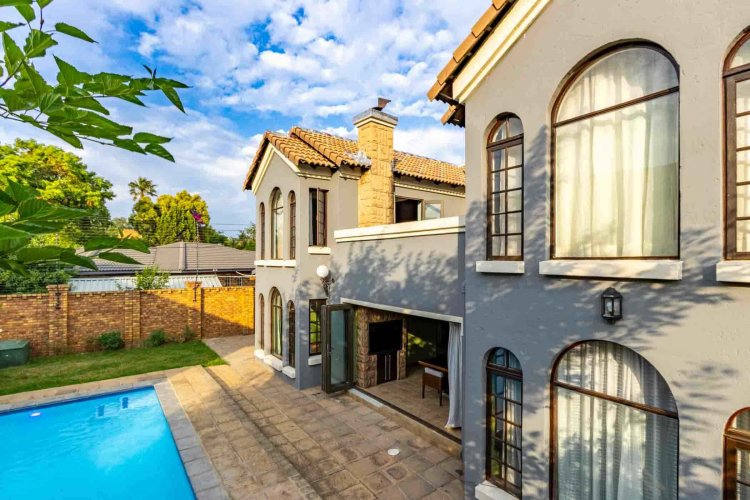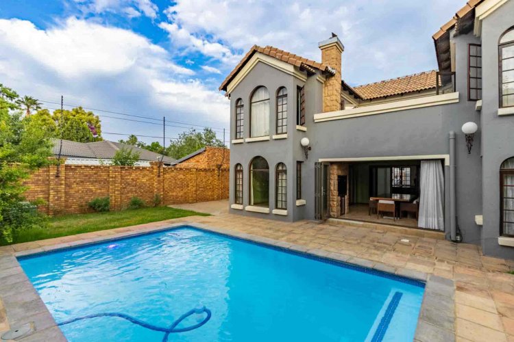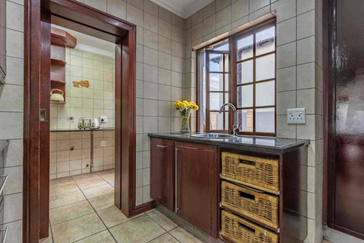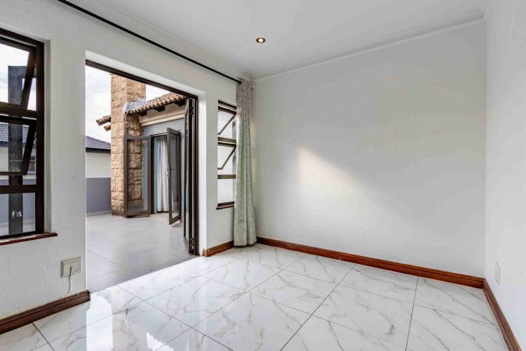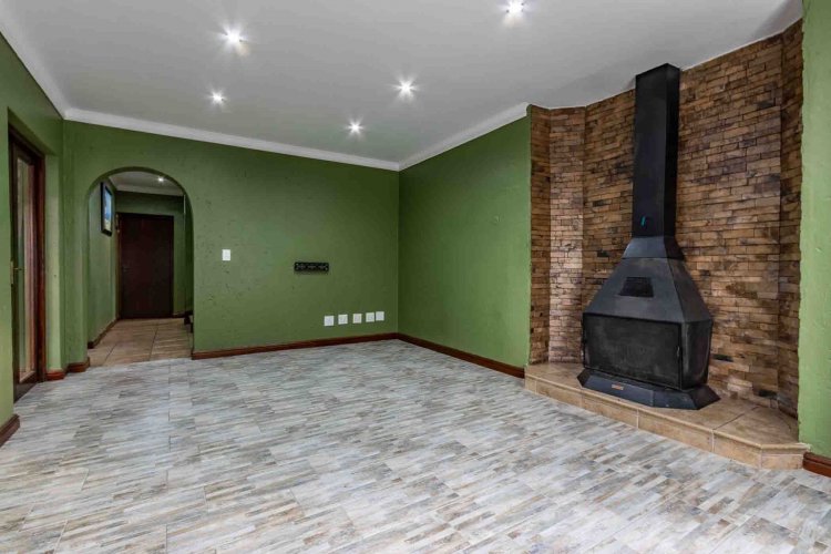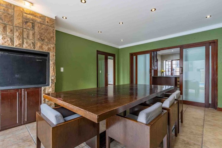 Freshly painted and radiant, the residence boasts interconnected lounge with classic fireplace, dining, and TV rooms, creating an effortless flow ideal for family life and entertaining. The dining area opens gracefully onto a lush, tranquil garden, with comprehensive indoor braai, leading to a sparkling pool and a greenery garden area with a sprinkler system, bask in the sunny afternoons of relaxation and joy. A dedicated study or multipurpose room provides flexibility for your lifestyle. Clever under stair storage ensures every inch of space is beautifully optimized.