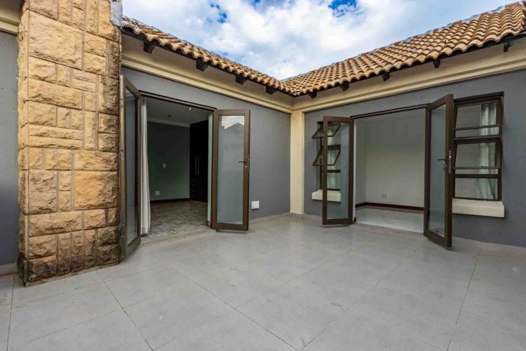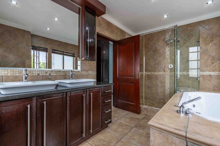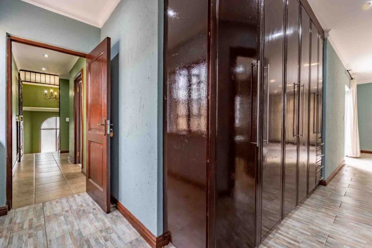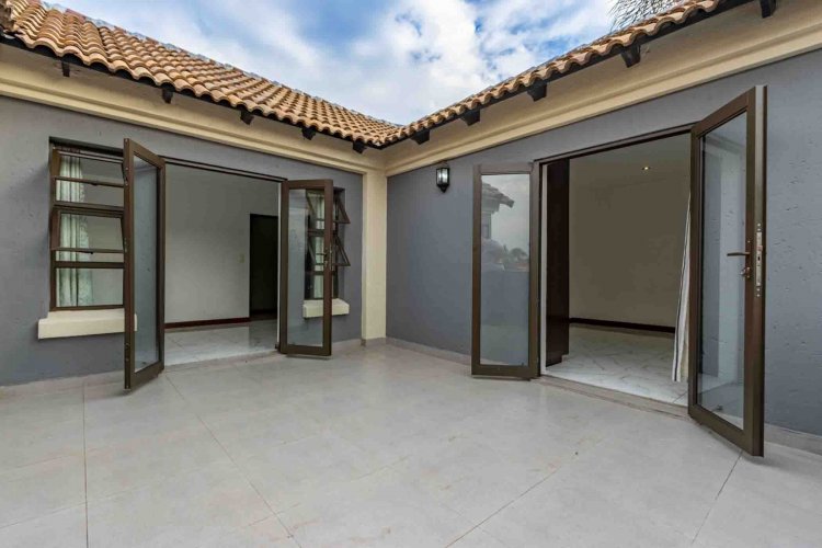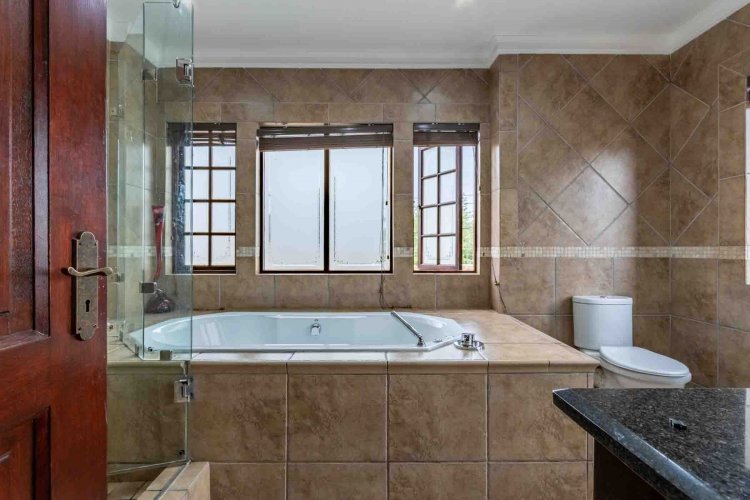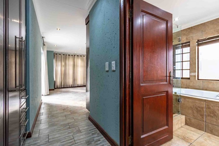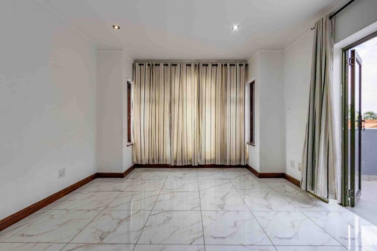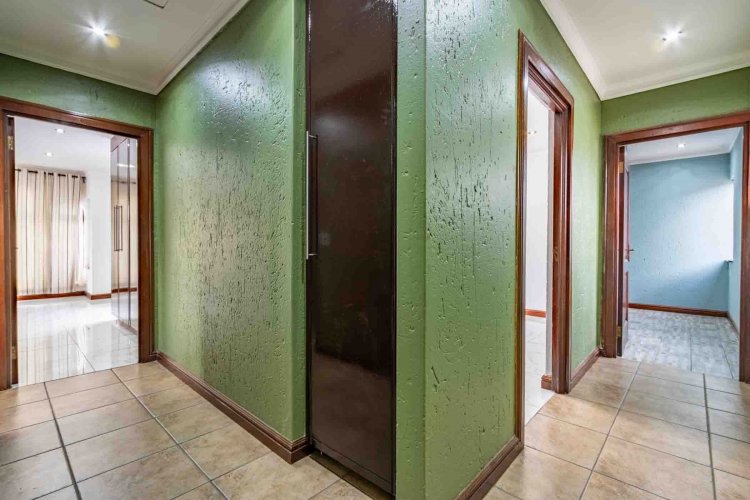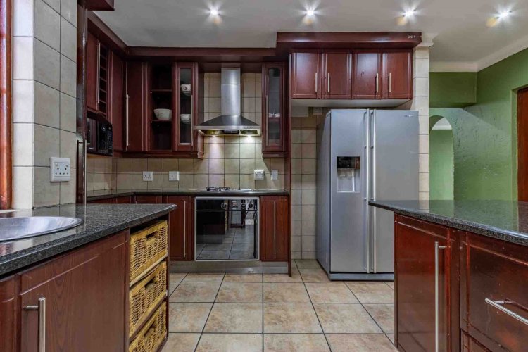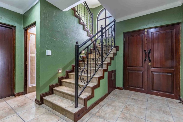 Freshly painted and radiant, the residence boasts interconnected lounge with classic fireplace, dining, and TV rooms, creating an effortless flow ideal for family life and entertaining. The dining area opens gracefully onto a lush, tranquil garden, with comprehensive indoor braai, leading to a sparkling pool and a greenery garden area with a sprinkler system, bask in the sunny afternoons of relaxation and joy. A dedicated study or multipurpose room provides flexibility for your lifestyle. Clever under stair storage ensures every inch of space is beautifully optimized.