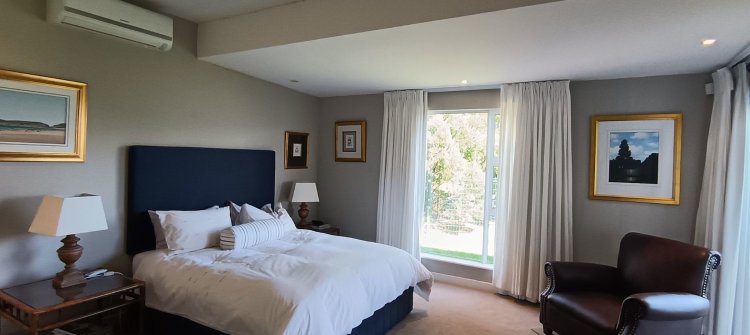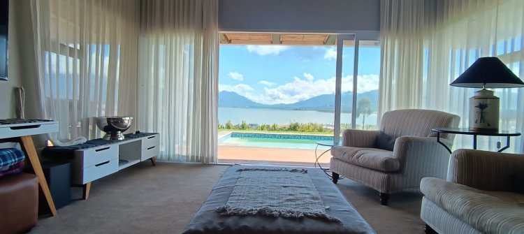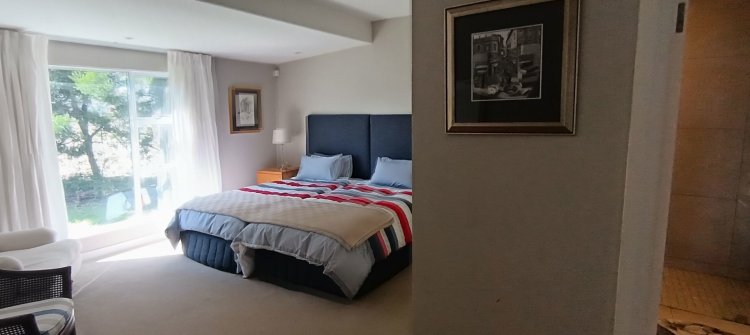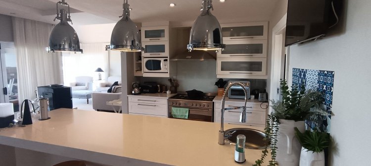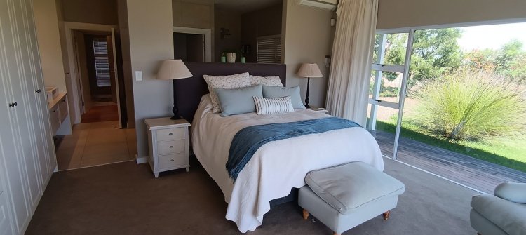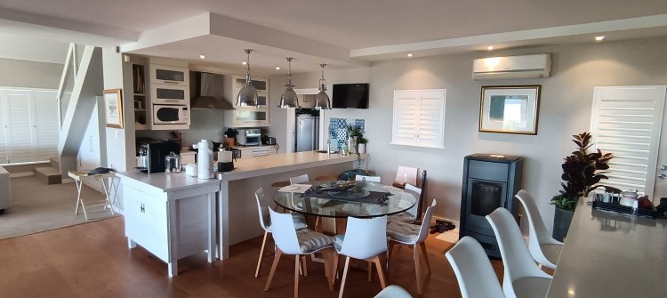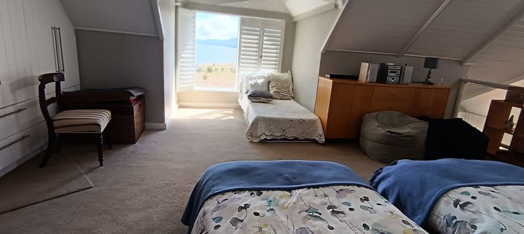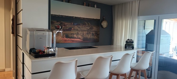 Stunning single-story property featuring four bedrooms (one upstairs, three downstairs), each with its own bathroom. The home boasts an open-plan kitchen, bar, and dining area that flows seamlessly into an outdoor sitting space. Enjoy spectacular views from the swimming pool and immaculate vistas throughout the property. Additional features include: Spacious living room and separate TV room with a huge large TV Dedicated barbecue room integrated with the outdoor living space Single garage Solar panel system for energy efficiency Two water tanks for ample water supply