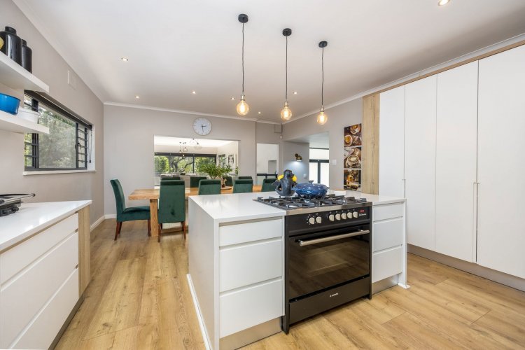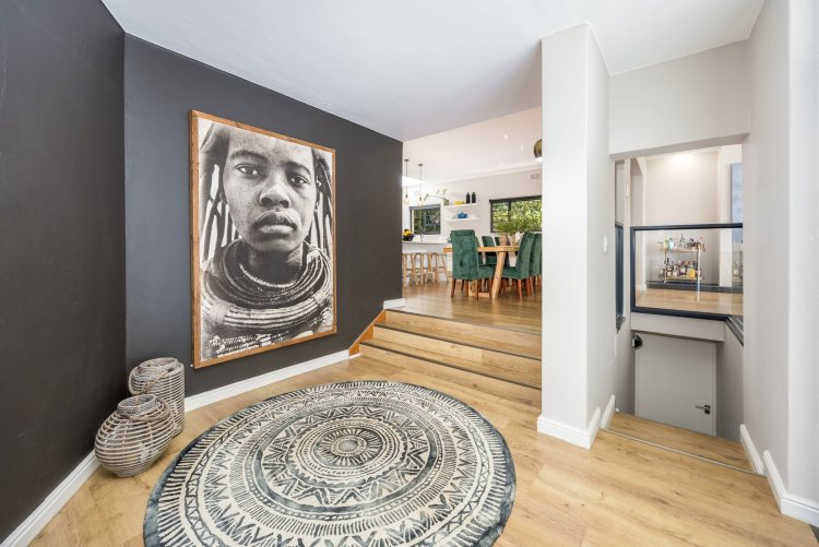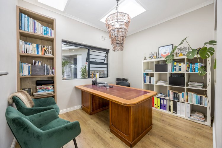 The spacious study has been brilliantly incorporated into the living area, offering a glass separation that still allows it to be flooded with natural light. This property offers the possibility of utilising the staff quarters as a second study or as a 5th bedroom, as it has a door that opens directly into the home.