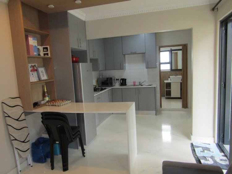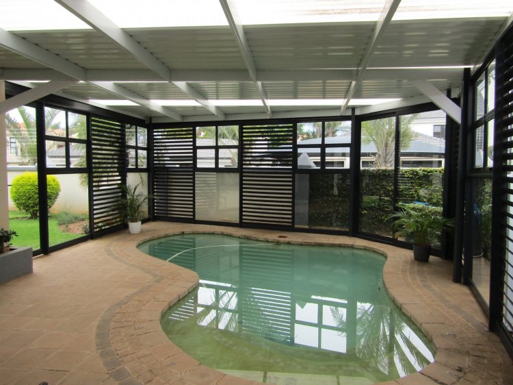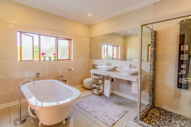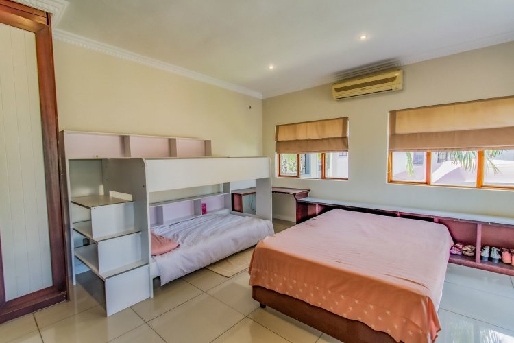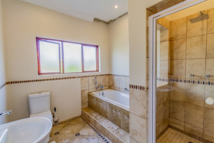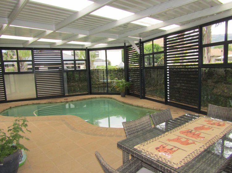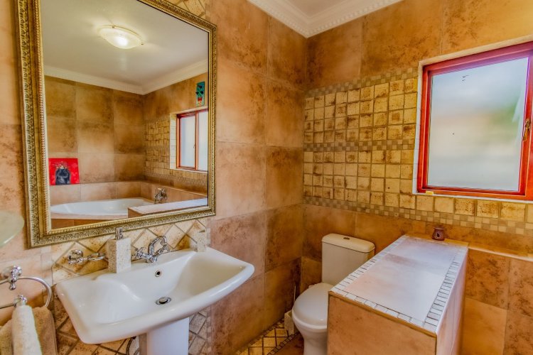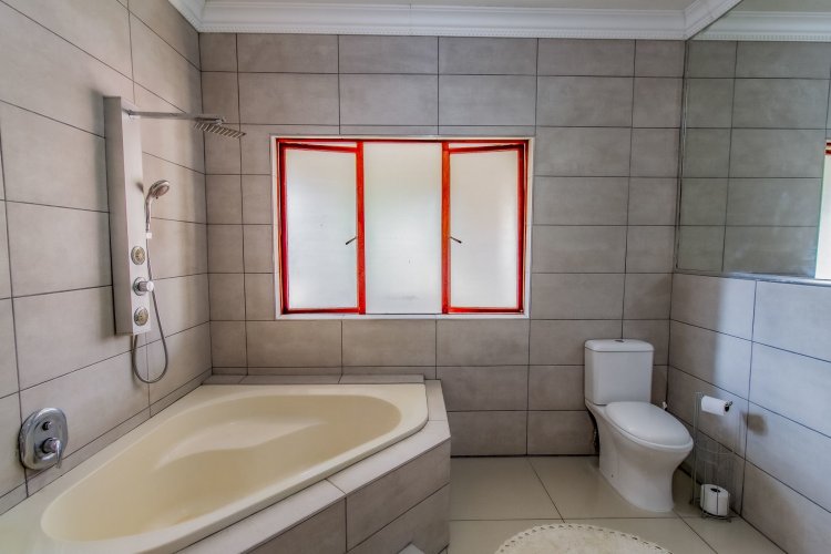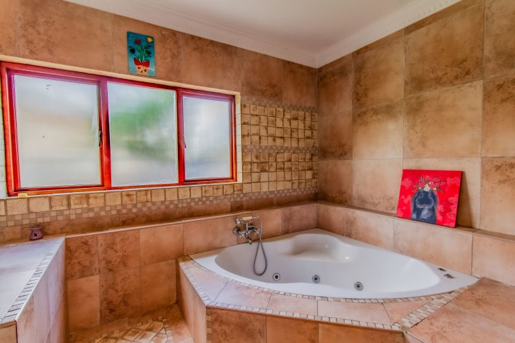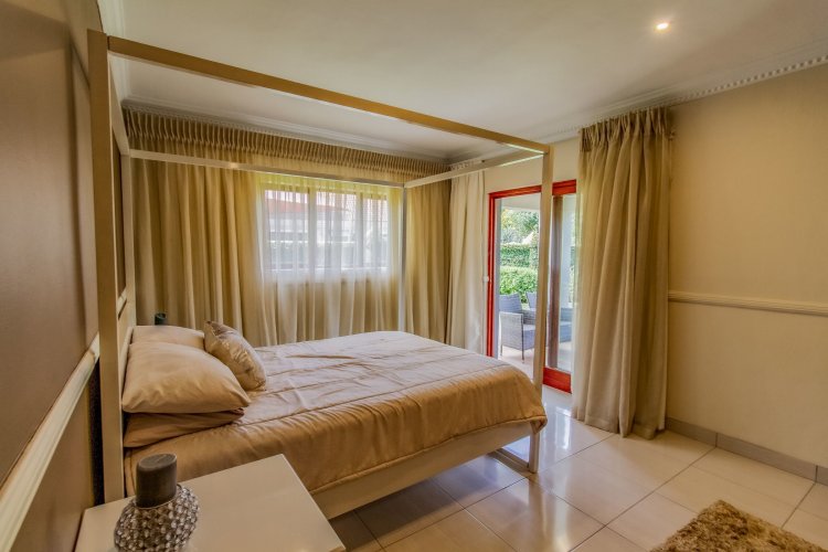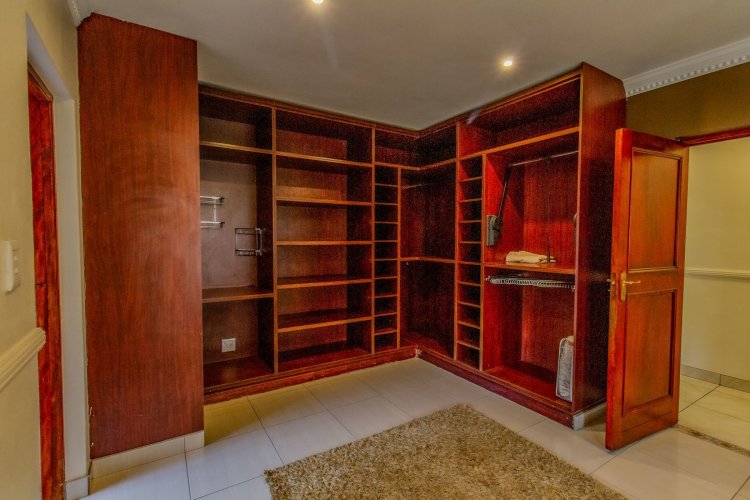 Curtains are custom-made and are included in the sale. Furniture is available for purchase at a reasonable offer. The property is equipped with an 8kVA solar system, a water tank with pressure pump, a servant's quarter with en-suite bathroom, a double garage, and additional off-street parking.