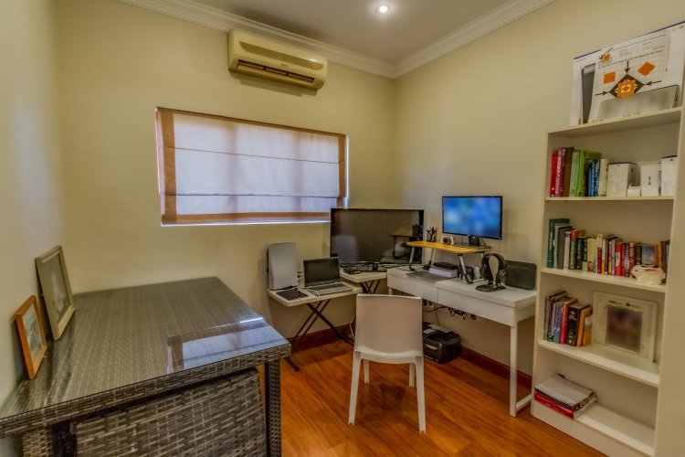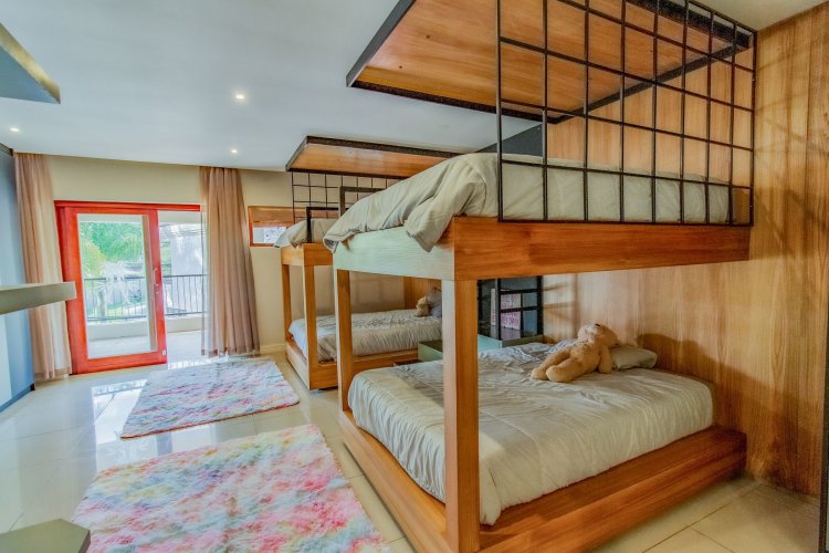 Downstairs is a guest bedroom with a patio and upstairs you will find the beautiful spacious main bedroom, two more bedrooms with balconies, a pyjama lounge, a study and a gym.
