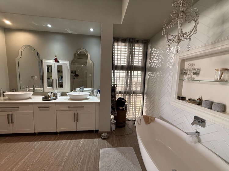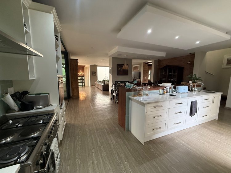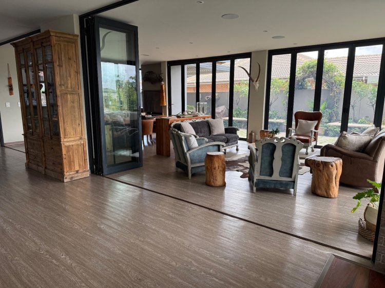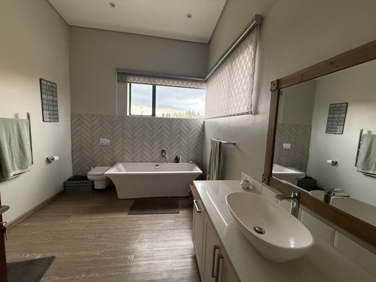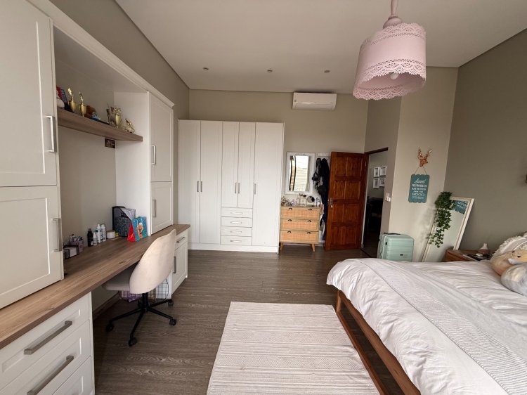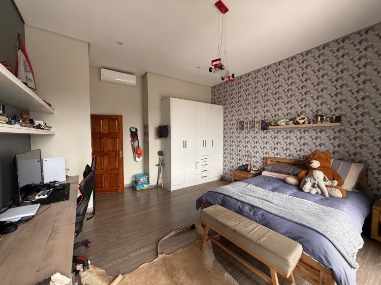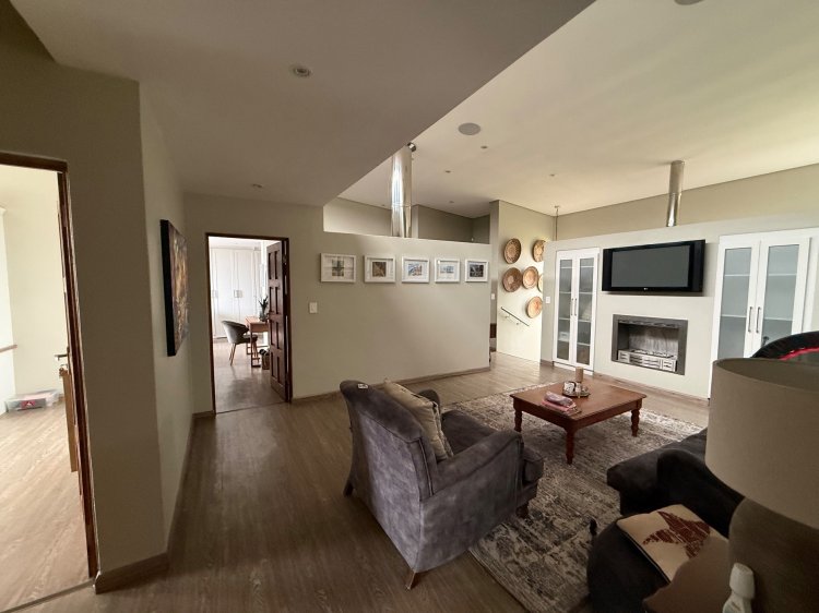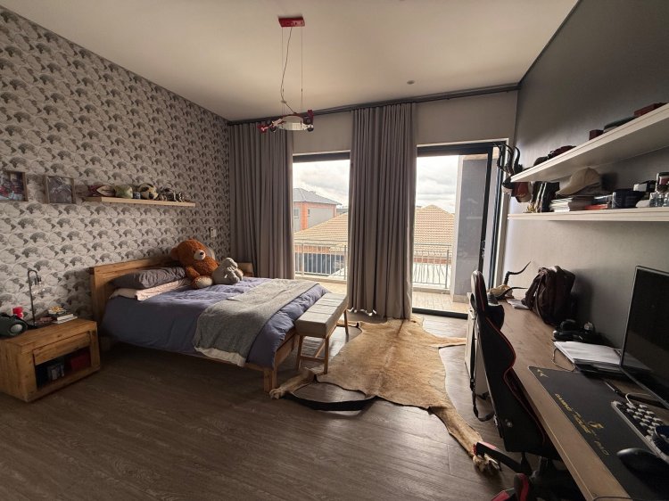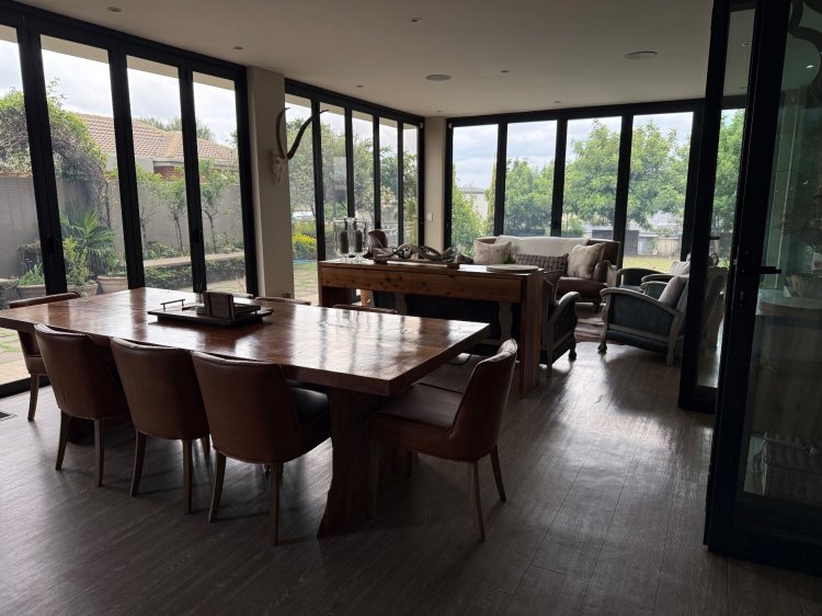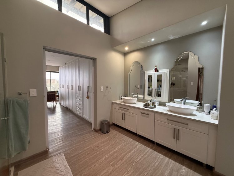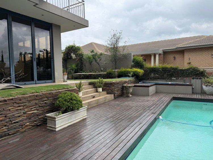 Discover the epitome of elegance and contemporary comfort in this 648m² architectural masterpiece, perfectly positioned on a 1055m² stand within the exclusive Bankenveld Estate. Every element of this home has been meticulously crafted to embody refined living and timeless sophistication. A Grand Welcome Step through the impressive entrance hall into expansive open-plan living spaces, where bespoke finishes, generous proportions, and classic design details create an atmosphere of understated opulence. The family room, anchored by a wood-burning fireplace, offers a warm and inviting retreat for both intimate gatherings and elegant entertaining. Private Sanctuary The upper level hosts five luxurious bedrooms, each with built-in wardrobes and direct access to a balcony. The primary suite exudes indulgence, featuring a sumptuous en-suite bathroom with underfloor heating. A private study and an elegant pajama lounge offer additional comfort and sophistication. Entertainment & Outdoor Elegance Designed for effortless entertaining, the home features a custom-built braai and bar area with stacked glass doors that open to a beautifully landscaped garden. Enjoy the tranquil ambiance of a sparkling pool and a louver-roof covered patio, perfectly suited for year-round leisure and refined outdoor living. Exceptional Features Double garage with parking for up to five vehicles Separate staff quarters with private facilities State-of-the-art security features Water purification and filtration systems Diesel generator and borehole for uninterrupted living This remarkable residence redefines luxury living in one of the most sought-after estates. It offers the perfect balance of elegance, comfort, and practicality — designed for the discerning buyer who expects nothing less than excellence. Private viewings by appointment only. Contact me today to experience this exceptional home in person.