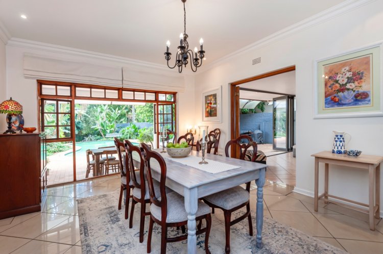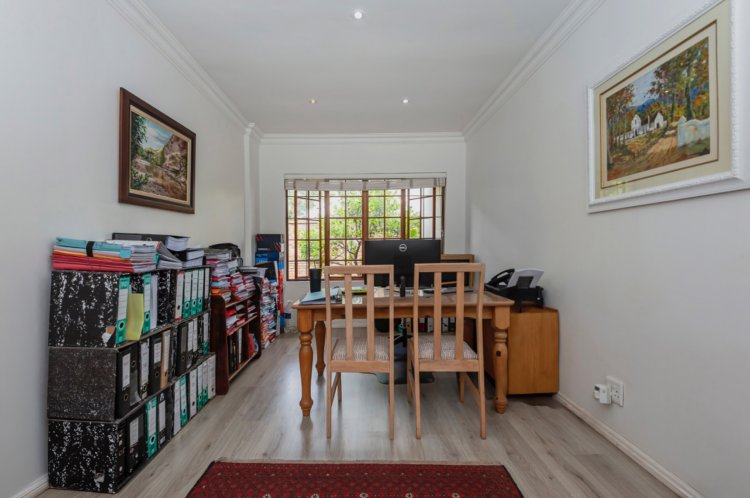 Set within a secure boomed enclave in the heart of Morning Hill, this expansive ±552m² residence is the ultimate power move for the extended family. Designed for discerning buyers who value space, light and versatility, this immaculate home seamlessly blends elegant living with effortless entertaining. Step into light-filled, free-flowing living areas where large windows frame tranquil views of the landscaped garden and sparkling pool. A wood-burning fireplace anchors the sophisticated lounge, while stacking doors open onto a massive covered patio complete with a built-in gas braai — creating the perfect setting for stylish gatherings and relaxed family weekends. The beautiful granite eat-in kitchen is both welcoming and practical, offering generous workspace and a separate scullery to keep everything neatly tucked away. Accommodation is exceptionally generous, comprising five spacious bedrooms, including two en-suite bathrooms. The serene main suite features a dressing room and a full en-suite bathroom, creating a private retreat within the home. A dedicated study provides the ideal executive work-from-home space. Adding remarkable versatility is a separate one-bedroom cottage with its own private entrance — perfect as a teenage pad, guest suite, work-from-home office, staff accommodation or income-generating opportunity. Parking is abundant with four garages (double automated garage plus a double Hollywood-style garage) and additional open parking for 8–10 vehicles — ideal for entertaining on a grand scale. Additional features include: Full solar solution with inverter and battery back-up JoJo water tank Comprehensive security Staff accommodation This beautifully maintained and exceptionally versatile residence offers the complete lifestyle package — live large, entertain in style, and enjoy ultimate flexibility in one outstanding Bedfordview home.