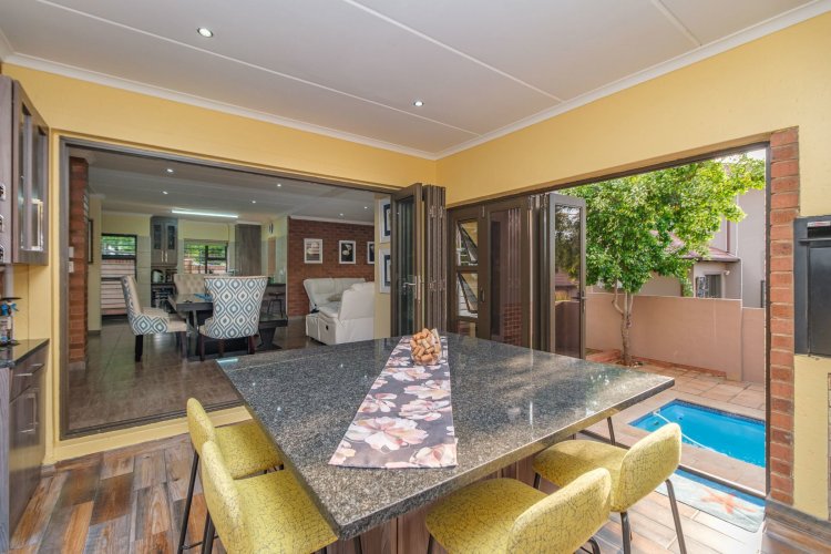 The open-plan living and dining areas create a warm, welcoming flow — perfect for family moments or entertaining guests. Stacking doors open to a covered braai area, ideal for year-round gatherings — whether it's a cozy rainy-day braai or sunny afternoons by the sparkling pool. The Pool (solar heated) for year-round enjoyment and Inverter (7.2kva)
