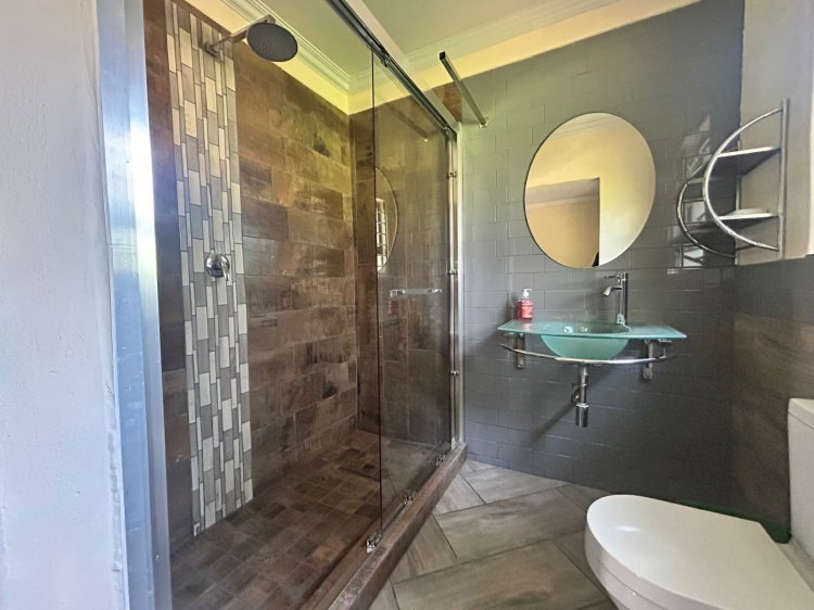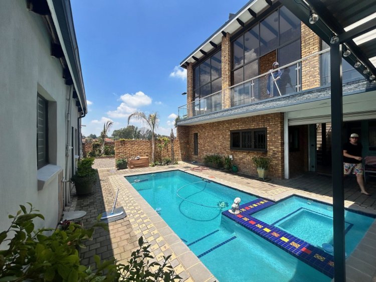 Ideally located within close proximity to both St Dunstans & Rynfield Laer, this spacious double storey offers boundless opportunities. The home & the separate bachelor pad surround the pretty heated pool that also has a jacuzzi, with each having separate garaging. The home offers lovely indoor / outdoor living, with stacker doors that open fully giving a superb flow from the home to the pool area & ideal for family gatherings & easy entertaining Low maintenance facebrick, with water storage & solar back-up helps to negate any power & water issues.