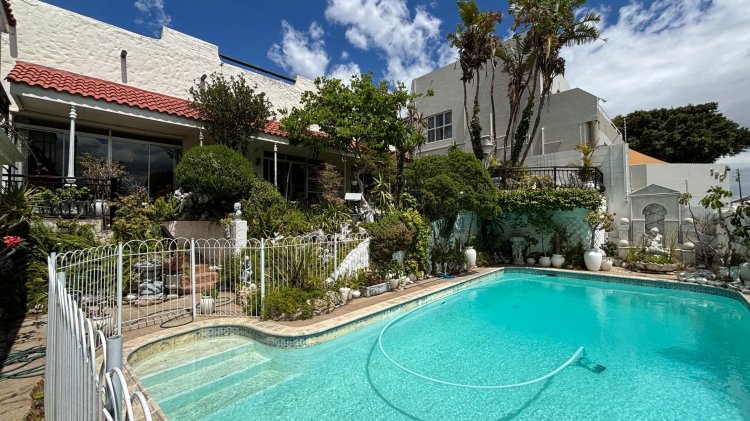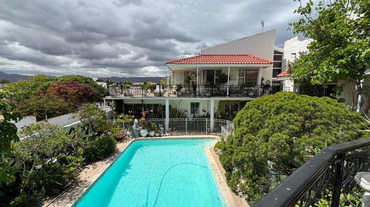 Set in the prestigious enclave of Strand North, this impressive multi-level residence enjoys sweeping ocean and Hottentots Holland Mountain views, best appreciated from two expansive balconies. While the interior reflects a more traditional style, it offers an exceptional opportunity to modernise and personalise, allowing the home to fully realise its remarkable potential. The welcoming entrance leads to a private study and guest cloakroom before opening into generous living spaces centred around a well-appointed kitchen with solid wood finishes, double oven, hob and integrated griller. Designed for easy entertaining, the dining area flows into the TV and braai room, opening onto a tranquil landscaped garden, while a separate guest suite with its own lounge and bathroom lends itself perfectly to a self-contained flatlet. Accommodation is thoughtfully arranged, with a double bedroom and bathroom on the lower level and four additional bedrooms upstairs, including a spacious main suite with en-suite bathroom. A family bathroom services the remaining rooms, one of which opens onto a balcony overlooking the pool. The home offers multiple entertainment areas, including a TV lounge with built-in bar, a games room, and seamless access to the outdoor entertainment space with built-in braai, guest cloakrooms and a striking double-sized swimming pool. Additional features include a second study, staff accommodation, an automated double garage with workshop space, ample secure parking and a low-maintenance garden. With some updating, this property presents a rare opportunity to transform a well-located Strand North home into a truly exceptional coastal residence.