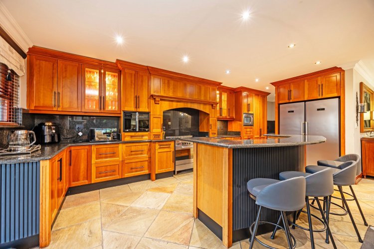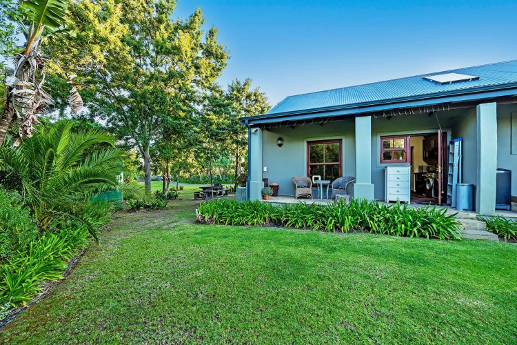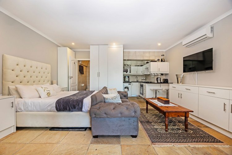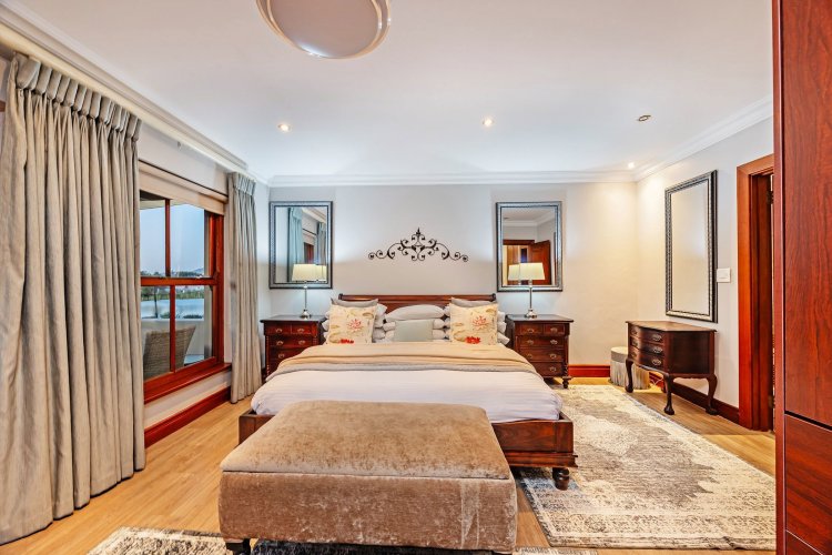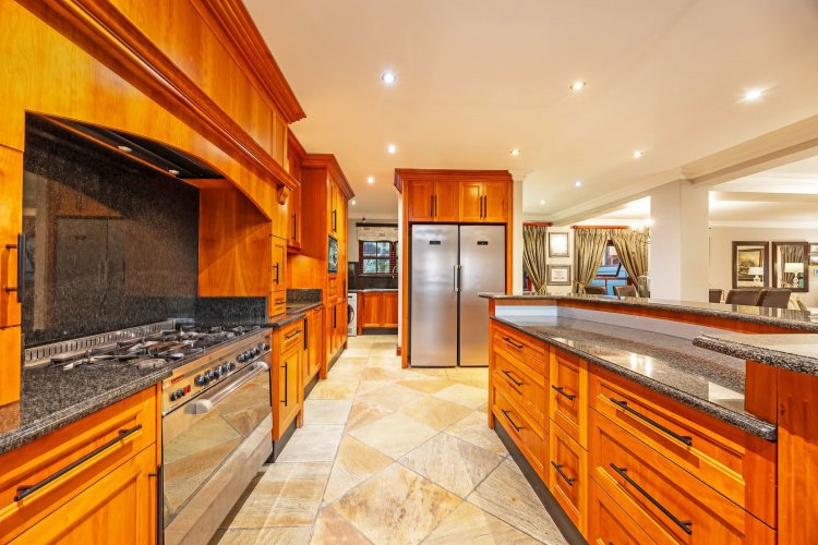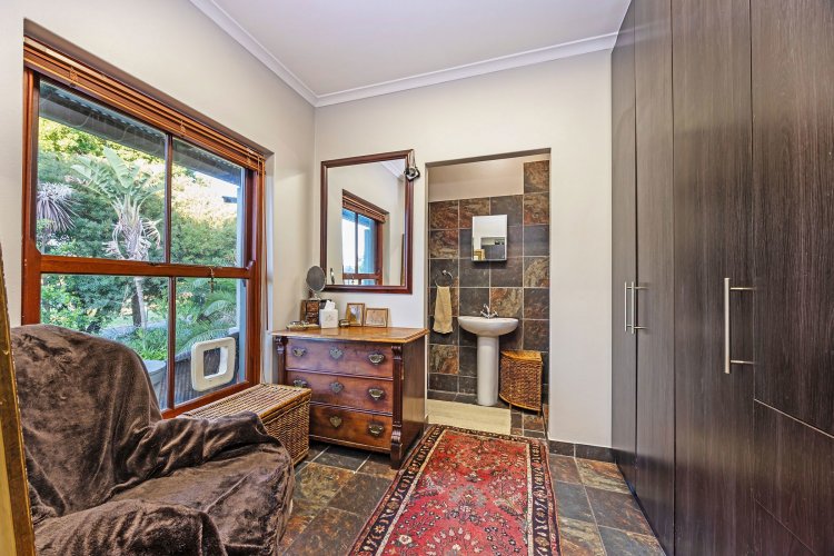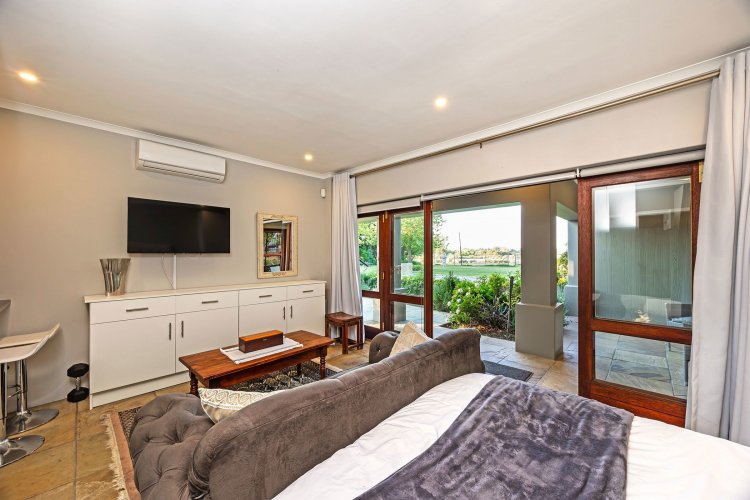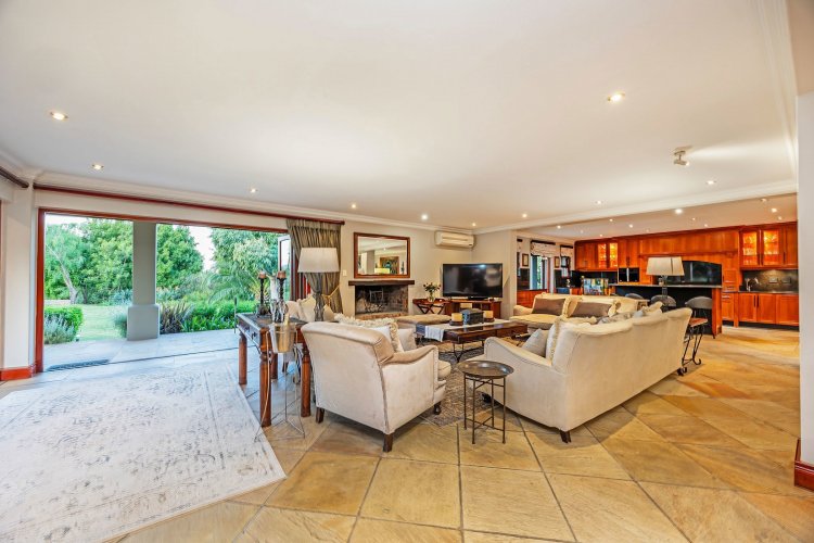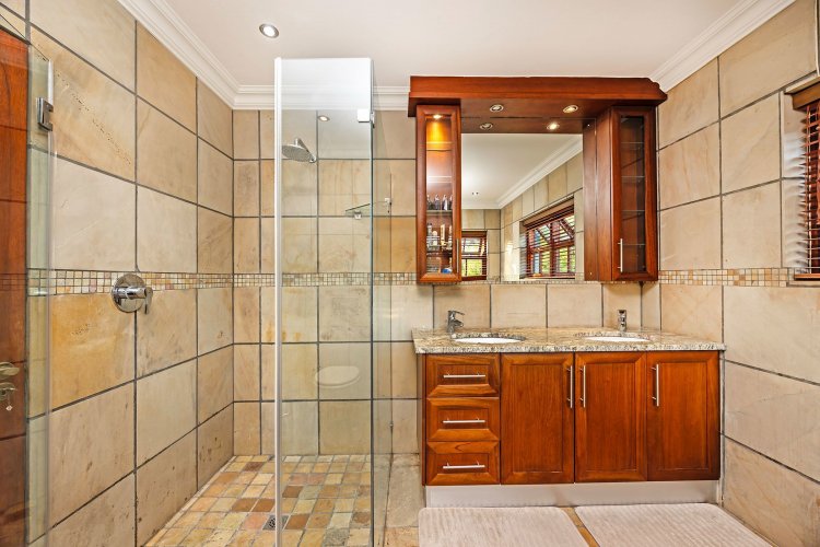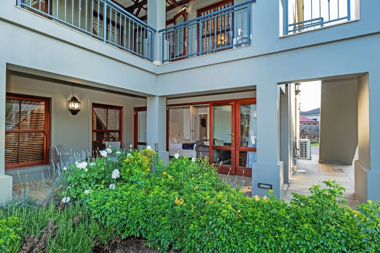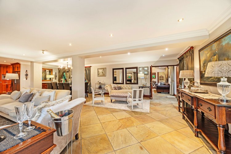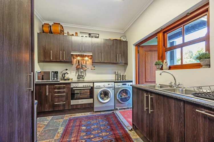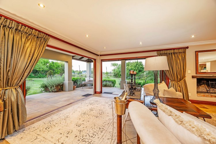 Bathed in natural light, this generously proportioned home offers a double volume entrance hall, three open plan living areas with contemporary indoor braai/fireplace and stunning gourmet solid cherry wood kitchen with Rustenburg granite tops – all opening seamlessly onto the landscaped well-maintained garden and covered patio. A private guest suite also to be found on the ground floor adjacent to an eye-catching staircase that leads up to a spacious pajama lounge with double door leading to a wraparound large patio and overlooking this stunning garden with views on the Vierlanden dam and mountains. The master suite is luxurious with a coffee station, full en-suite with spa bath and double basin. Also opening up to the covered patio overlooking the lovely garden and dam. There is another double bedroom on this level, sharing a bathroom. Reflecting a style that is both functional and sophisticated this home has its own security cameras, alarm, beams and day/night outside lights. Other notable extras include the highest quality fixtures and fittings throughout, bespoke cabinetry, high ceilings, vinyl flooring, sand stone tiles, ceiling fans, heated towel rails, borehole, water tank, irrigation, air cons, fibre swimming pool and under covered parking for 4 vehicles. Besides the stunning main house, there is a second dwelling with 2 bedrooms, lovely open plan living area with exposed beams opening up to large covered patio overlooking the luscious garden. Th 2nd dwelling has its own carport. Perfect to work from home or for a granny. The ultimate bonus is the three self-contained flatlets with each with their own bathroom and kitchen, as well as pre-paid electricity meters and alarms. This lovely property does not only offer tranquilness, but also an income generation business of just shy of close to R40 000 per month. However, to convert the flatlets back to the main house is easily possible. A must to view this once in a life time opportunity, close to all amenities, schools, hospital and trails.