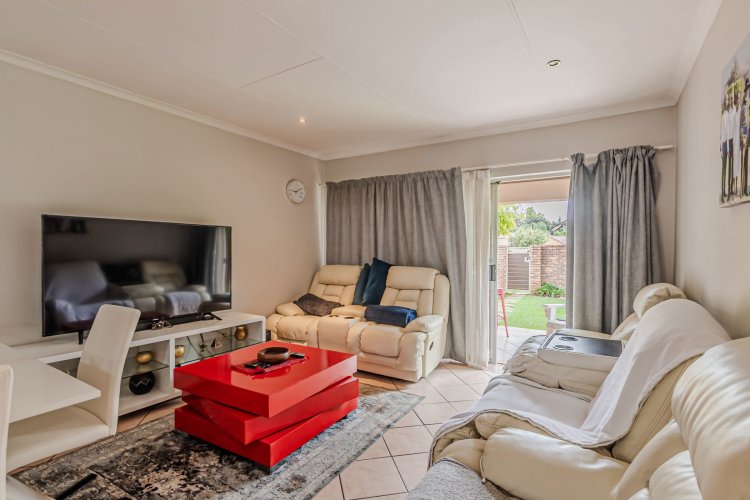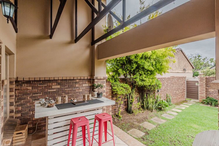 Stunning 3-Bedroon Townhouse in Equestria nestled in a 24 hour security complex with lush trees and manicured gardens. Features include a main bedroom with ensuite, a third bedroom used as a home office for ideal remote work or study, an additional bathroom and toilet for family convenience. Open plan kitchen and lounge flowing to a large garden perfect for braai and entertainment. Double garage and visitors parking for guests.