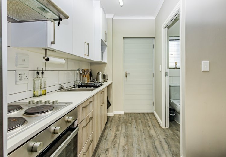 This first-floor studio apartment is perfect for an investment with good potential rental income, or for a single person looking for a safe lock-up-and-go. ADDED BONUS! EXTRA PARKING! Besides an open parking bay, this apartment also comes with a COVERED CAR PORT! The open plan living and sleeping area features a modern open plan kitchen and separate bathroom with shower, toilet, basin and mirror with trendy fittings. The entire unit has high quality vinyl flooring throughout. The kitchen is fitted with white engineered stone counter tops. The kitchen and bathroom backsplash both feature beautiful large format subway tiles. The Estate, guarded by 24h manned security, has so much to offer! Enjoy the clubhouse with entertainment facilities and a swimming pool where residents can socialize around the braai areas. There is also a safe play area for kids and a drop-and-collect laundry service available. It also offers ample visitors’ parking. With the estate centrally located close to access routes, shopping malls, schools, hospitals and golf course, it is also ideal for a student studying at the University of Stellenbosch, only 15 minutes away. Contact me today. Do not miss out!
