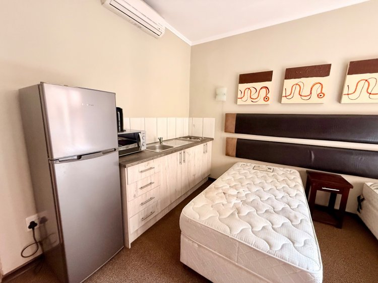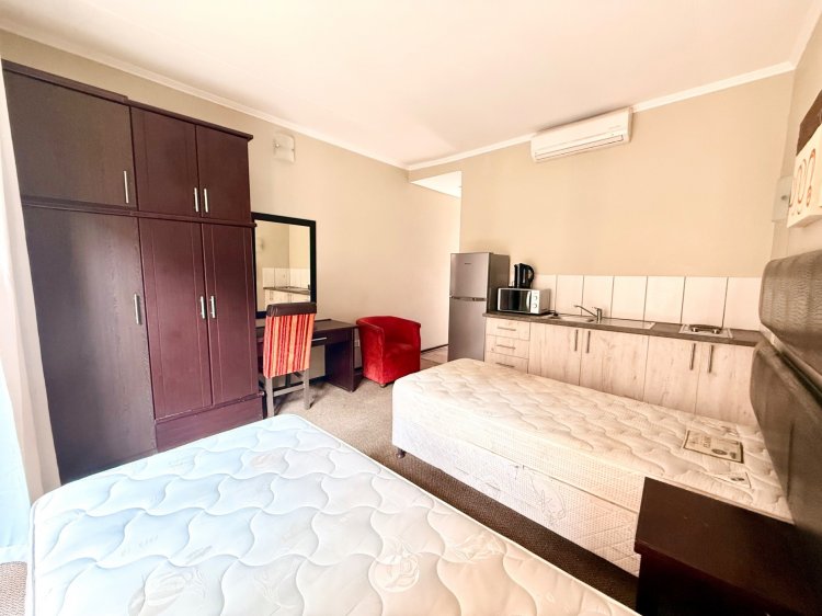 Step into a bright open-plan living area that flows onto a private balcony. The bedroom offers built-in cupboards and is serviced by a sleek full bathroom.