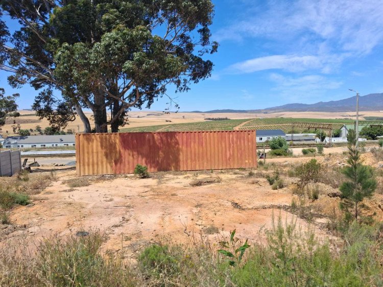 The 12m heavy duty container you see in some of the pictures is also for sale and is full of building material, but that is completely separate from the price of the plot. It can and also will be removed if you so choose.