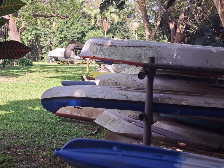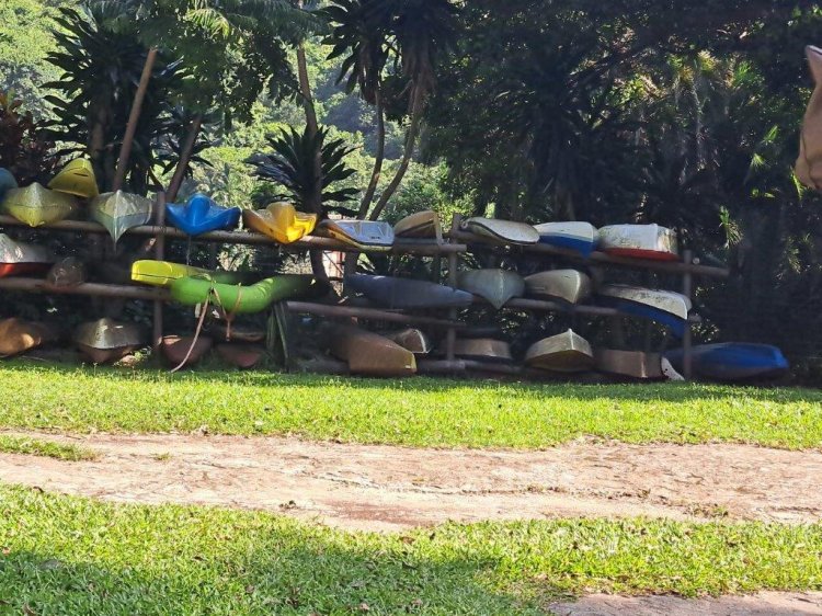 The complex is set in the Umthamvuna gorge and river. A truly beautiful area. The complex has its own private jetty directly onto the river which is a mecca for water skiing, boating and canoeing. A tranquil setting with loads of open garden, large trees, a dam, and a great club house with its own swimming pool. Not to mention the jetty, ready to slip a canoe into the river.