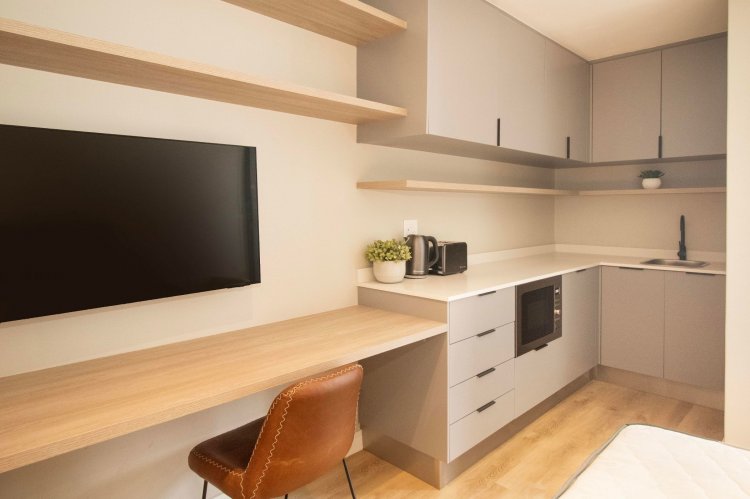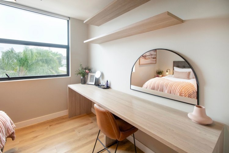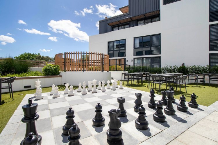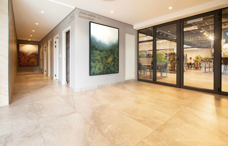 Lifestyle & Amenities • Two landscaped courtyards • Resort-style swimming pool & sun deck • Multiple braai areas & firepit • Restaurant & coffee shop • Onsite convenience store • Fully equipped fitness centre • Cinema & e-gaming room • Themed professional kitchen on each floor • Dedicated study centre with multiple zones • Outdoor study pods & zen courtyard • Backup power throughout all common areas • 24-hour security, biometric access & concierge • Secure parking for cars, motorbikes & bicycles • Campus shuttle service • High-speed Wi-Fi