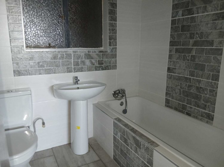 The freshly tiled and upgraded bathroom is fitted with a new bath, basin, and toilet, providing everything you need for everyday comfort.