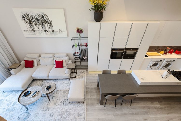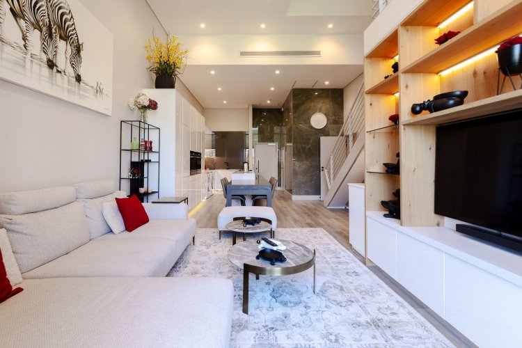 Short term rentals friendly building – an amazing loft style apartment now for sale. Renovated to perfection with a new white integrated kitchen with dining area and 2 new en suite new bathrooms. The apartment is jaw droppingly magnificent and professionally decorated. Double volume interiors – a true sense of space and luxury. The apartment is South East facing with magnificent views over the golf course, the stadium and the mountains.