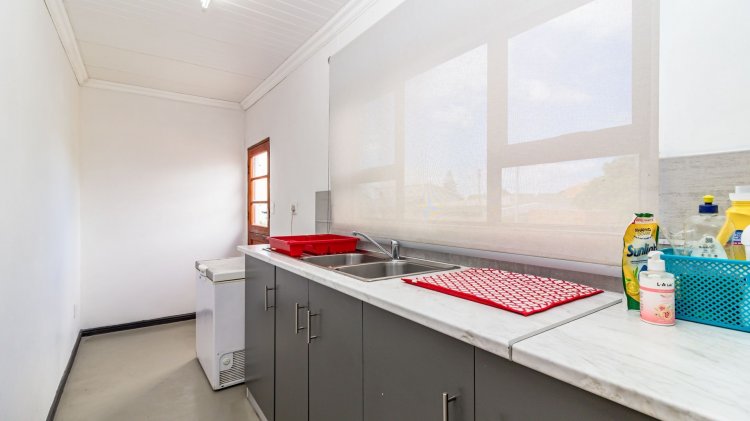 Discover the perfect blend of comfort, modern design, and investment potential in this spacious two-bedroom Nutec home, ideally situated in the peaceful coastal village of Franskraal. The 181m² home is set on a generous 788m² corner erf with dual access points, one of which is remote-controlled. Designed for easy, low-maintenance living, this property is ideal for investors, retirees, or anyone seeking a relaxed coastal lifestyle. Step inside to a bright open-plan living area that combines a spacious lounge, dining area, and kitchen. The kitchen is the heart of the home, featuring a gas stove built into a central island, plenty of workspace, and a large scullery to accommodate all your appliances. Entertaining is effortless with the expansive indoor braai room, perfect for hosting family and friends throughout the year. From here, you step out onto a wooden deck overlooking the swimming pool, surrounded by artificial grass to ensure minimal upkeep and maximum enjoyment. The main bedroom includes a stylish en-suite bathroom, while the second bedroom is conveniently located next to a modern family bathroom and a small study, ideal for working from home. The double garage is extra high to accommodate a caravan and features remote access. A 3m x 3m Nutec storeroom, rainwater tank, and neatly designed low-maintenance garden add to the home’s practicality. An added bonus is that the property comes with approved building plans for a future double-storey extension, offering even more potential for value growth. Beautifully finished, move-in ready, and located in a quiet, well-established neighborhood, this modern Franskraal home offers an exceptional opportunity, just 4.5 km from Gansbaai, 48 km from Hermanus, and 165 km from Cape Town International Airport, this home offers an excellent balance of coastal serenity and convenience. Whether you’re searching for a permanent residence, a holiday retreat, or a smart investment with solid returns, contact Marelize van der Walt from Century 21 Stellenbosch to arrange a viewing.