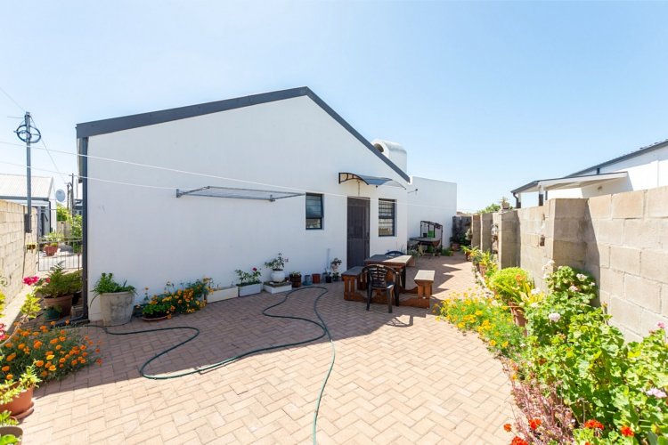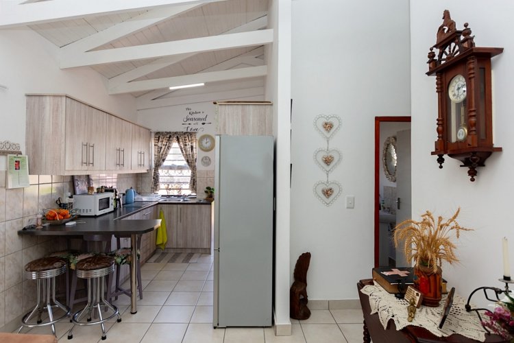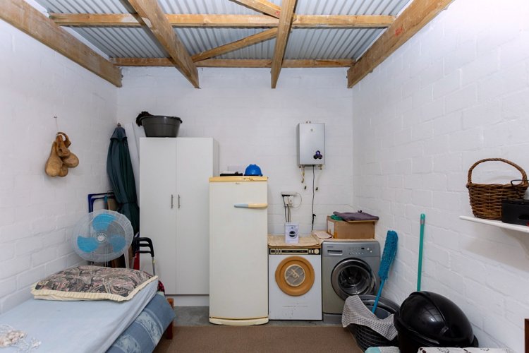 The property features a secure entrance with a safety gate, private parking, and a single garage. Inside, you’ll find an open-plan kitchen and lounge area, two bedrooms, and a full bathroom.