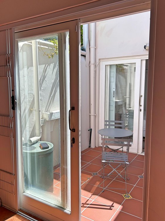 Step inside to discover a light-filled, open-plan living space designed for easy living. The home features two double bedrooms with built-in cupboards, and the main bedroom opens out onto a charming little courtyard.