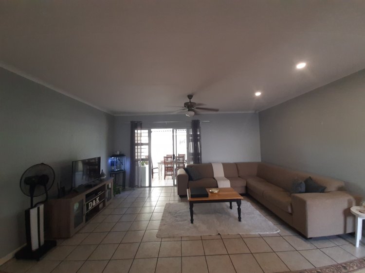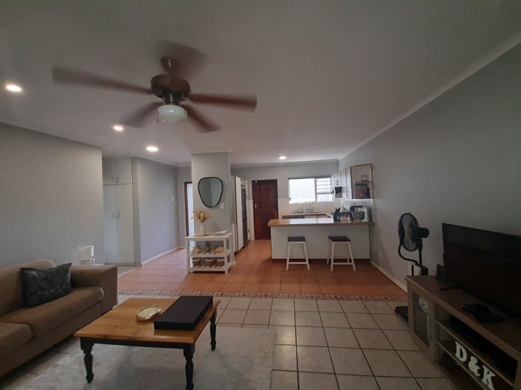 This very neat and modern 2 bedroom unit is located in a well managed and secure complex close to a primary school, shops and main access roads in Abbotsford. The open plan kitchen/lounge is spacious and leads to a lovely entertainment lounge and private back yard. The main bedroom has an en-suite (Shower, basin and toilet) whilst the second bedroom is served by a main bathroom, also with shower, basin and toilet. There are floor tiles, burglar bars and blinds throughout the home and the single garage has a remote controlled door with a loft and access to a courtyard which leads straight into the house. The under cover car port is paved and there is a 750L slimline water tank installed to ensure back up water supply for the small garden in front of the home.