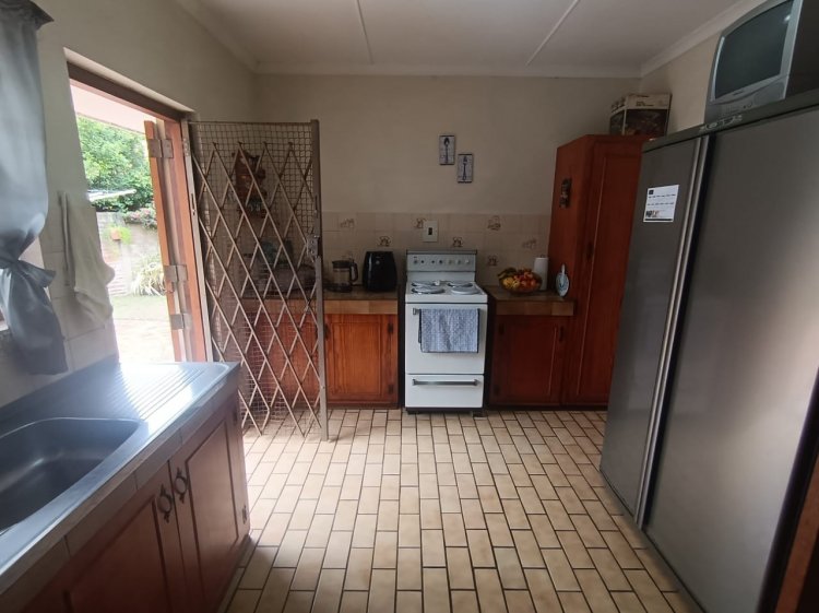 The main house features three bedrooms and two bathrooms, including a main en-suite. The living and dining areas flow into an enclosed entertainment area with a built-in braai and jacuzzi, perfect for hosting family and friends all year round.
