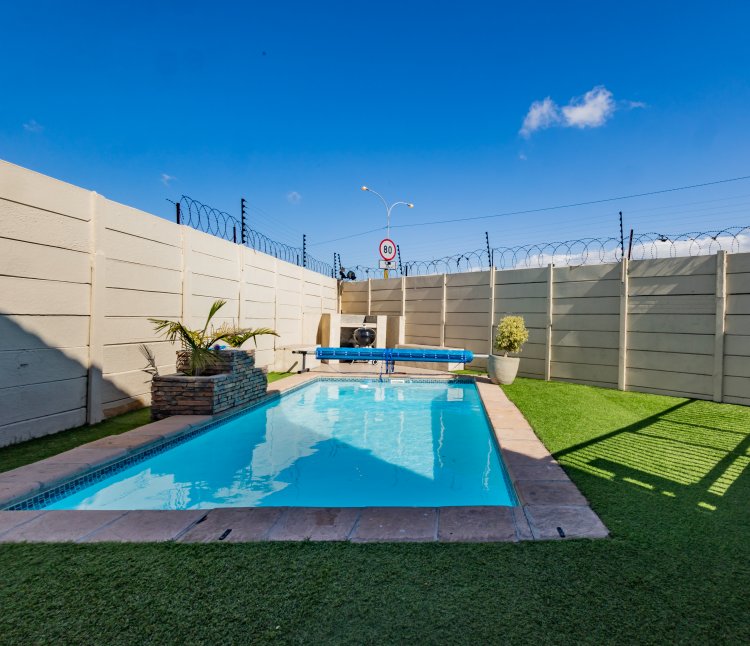Featuring contemporary finishes and a host of extras, this home perfectly blends luxury and comfort. Enjoy cozy winter evenings by the warm fireplace, take a refreshing dip in the pool during the summer, and stay cool with air conditioning on those hot days and nights.Parking is undercover for 3 cars.The pool has a heating system for winter and the property is equipped with an inverter for those load shedding days.