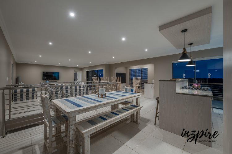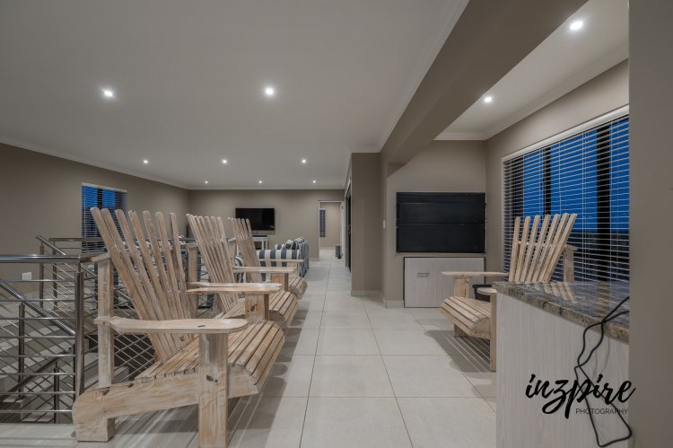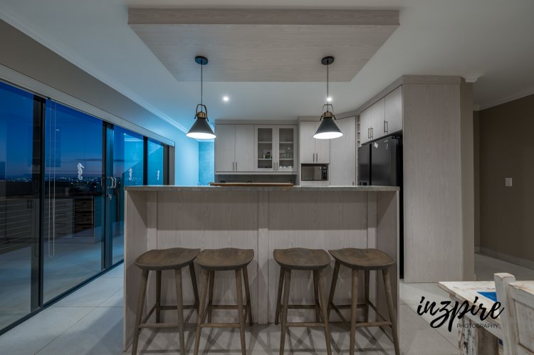 Upstairs, the open-plan kitchen and living area create a bright and inviting space, perfect for entertaining. Enjoy seamless indoor-outdoor living with two balconies offering panoramic sea and greenbelt views, and a built-in braai for those relaxed evenings with family and friends.
