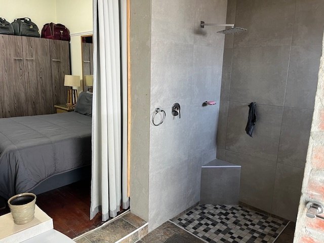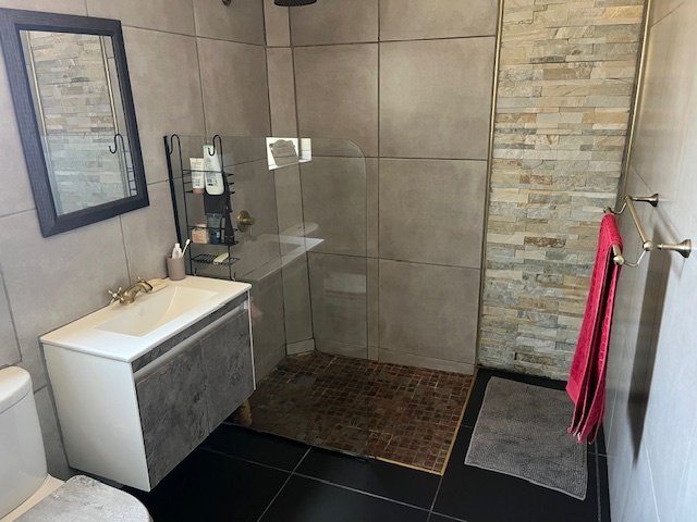 The modern kitchen features contemporary appliances, while the open plan living area is perfect for gatherings. Enjoy year-round entertainment in the indoor braai area.