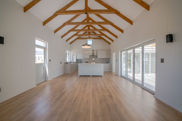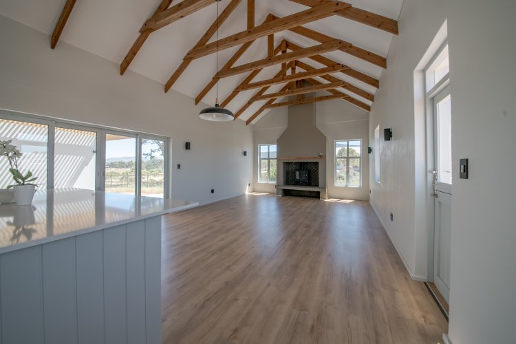 As one enters into a naturally light foyer, which is large enough to be used as an office space if required, turning to the right you walk into a spacious lounge dining kitchen area with a beautiful 12Kw enclosed wood burning fireplace. The scullery and laundry are neatly hidden and lead to a small service courtyard and a larger than usual double garage.