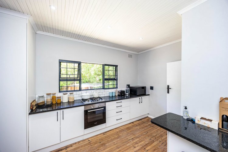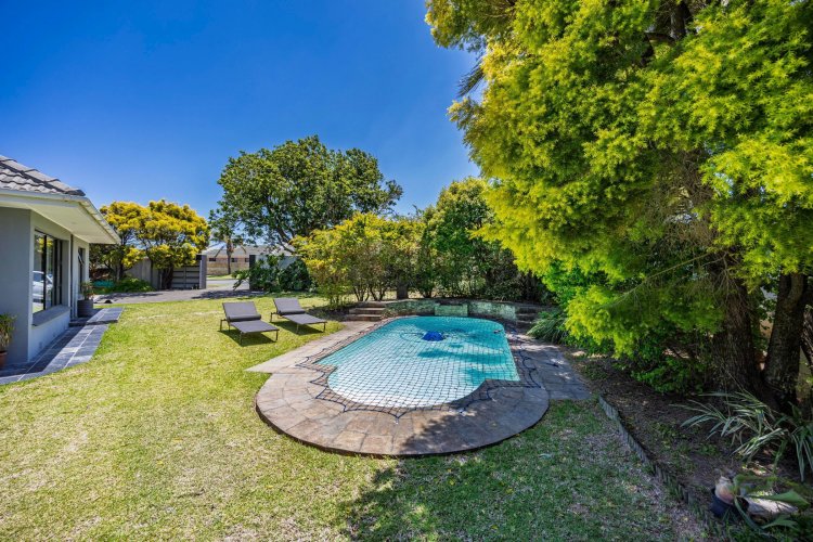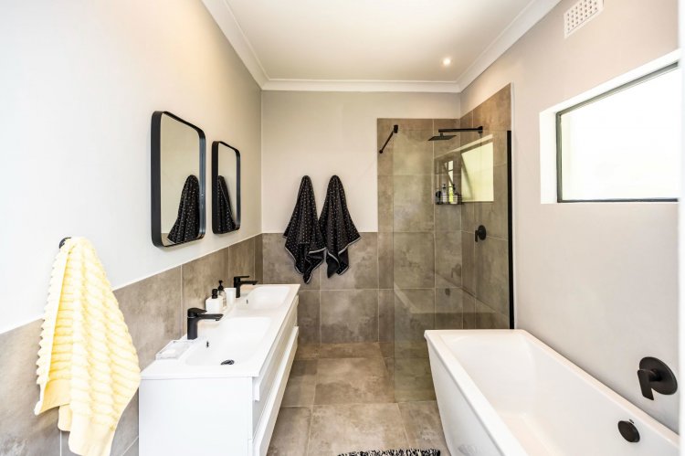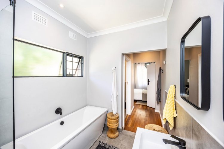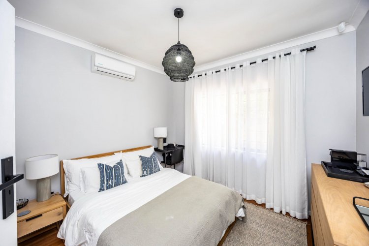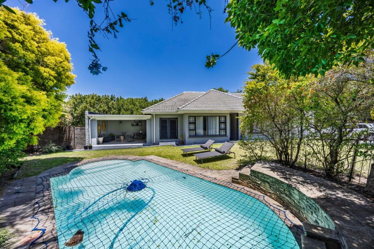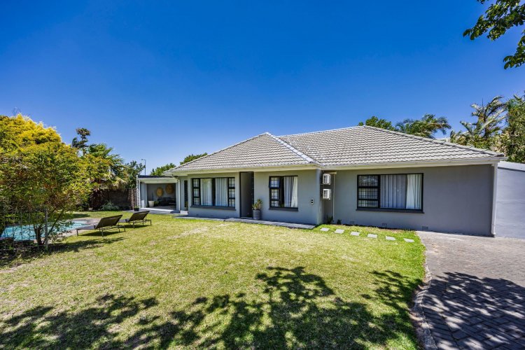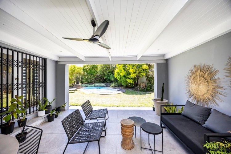 This stylish corner property is picture perfect. The open plan living space is light and bright with contemporary finishes and French doors that open to a cool covered patio and sparkling pool – ideal for indoor-outdoor entertaining. The modern kitchen has ample storage and workspace with the convenience of a separate scullery. The three chic bedrooms each offer a trendy en suite bathroom for further ease. In addition, the property offers a private and fashionable guest suite with a separate entrance which has income-generating potential.