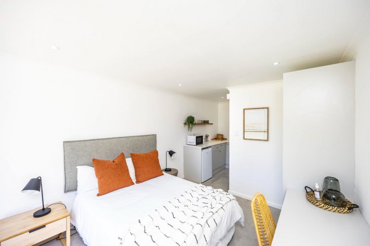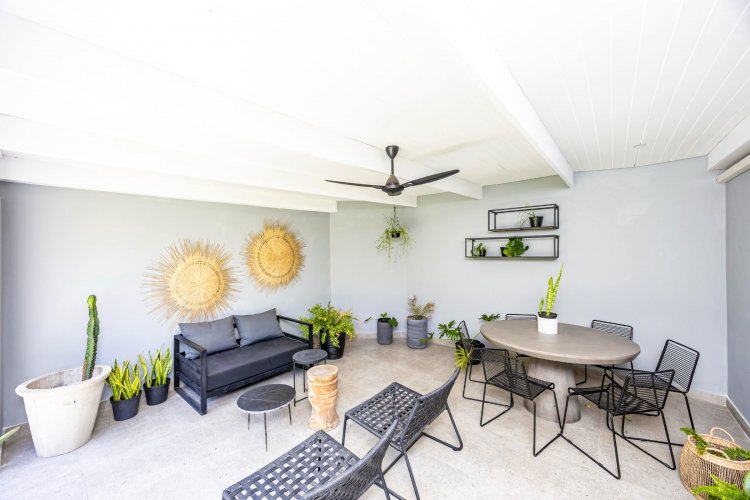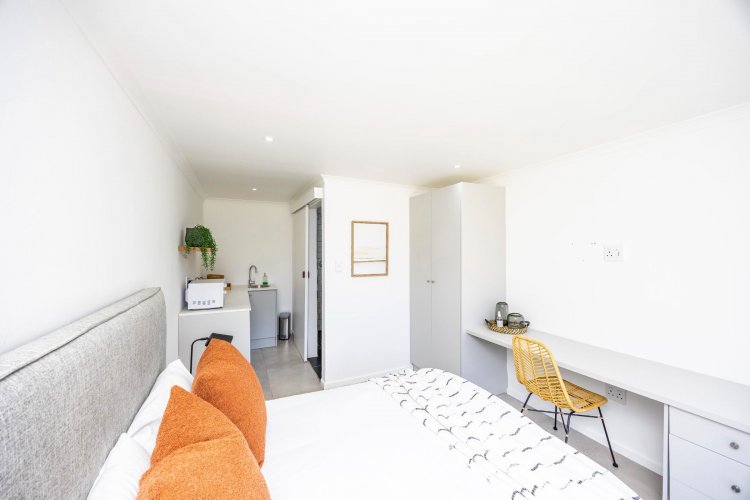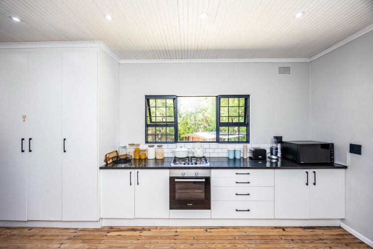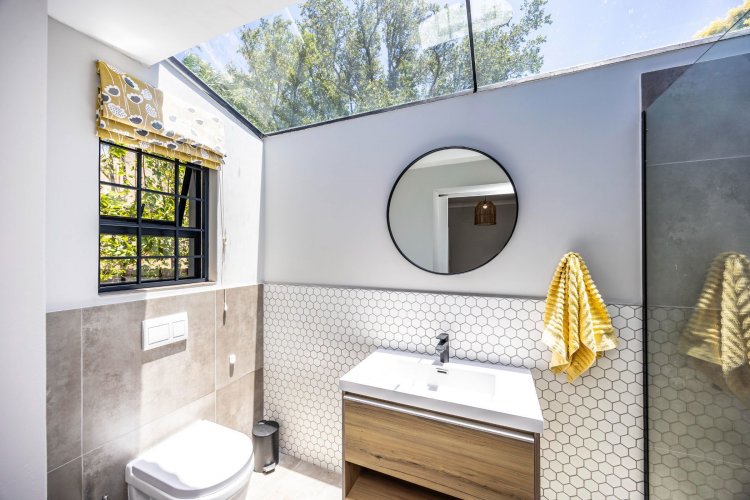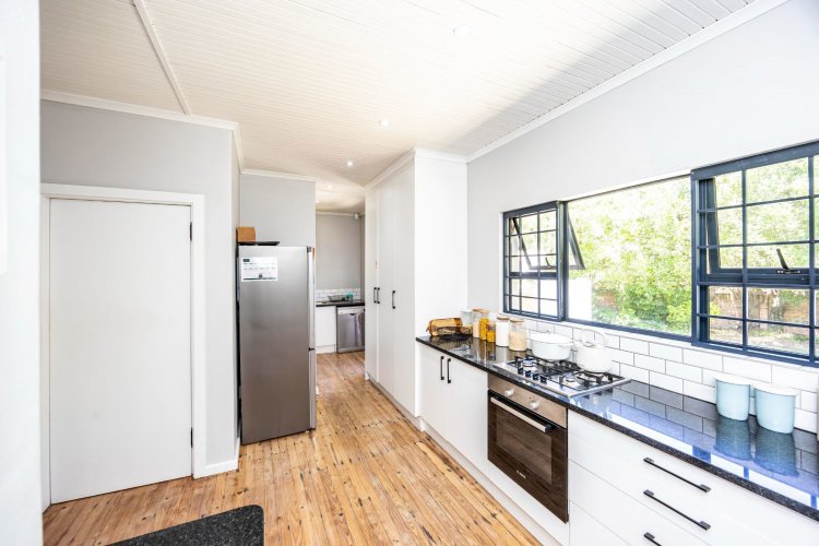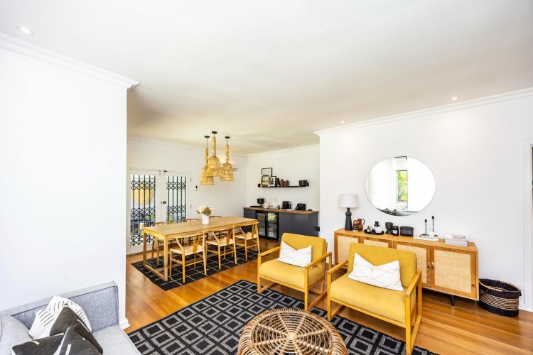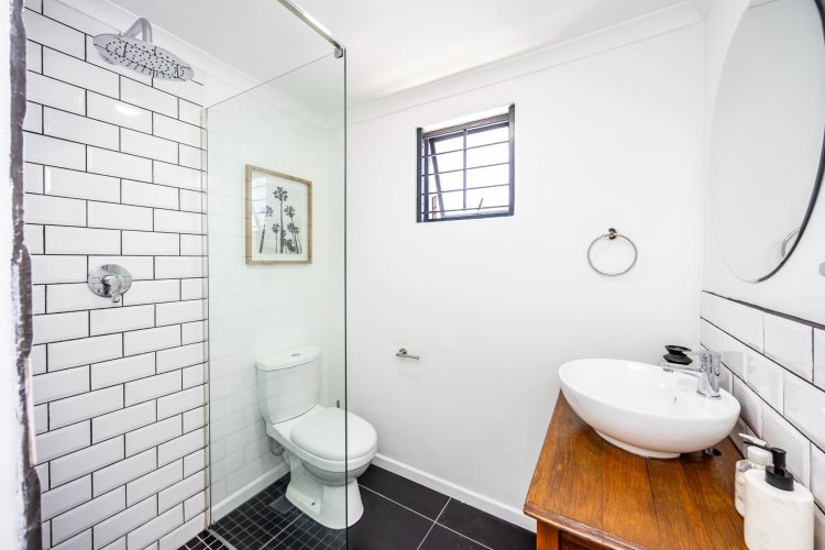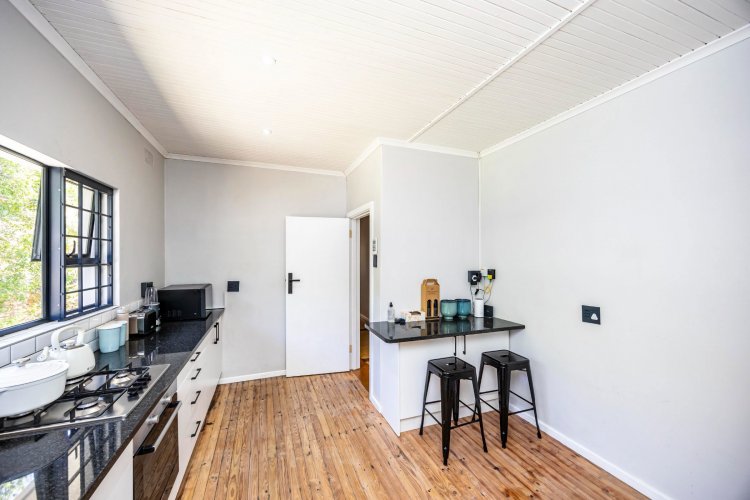 This stylish corner property is picture perfect. The open plan living space is light and bright with contemporary finishes and French doors that open to a cool covered patio and sparkling pool – ideal for indoor-outdoor entertaining. The modern kitchen has ample storage and workspace with the convenience of a separate scullery. The three chic bedrooms each offer a trendy en suite bathroom for further ease. In addition, the property offers a private and fashionable guest suite with a separate entrance which has income-generating potential.