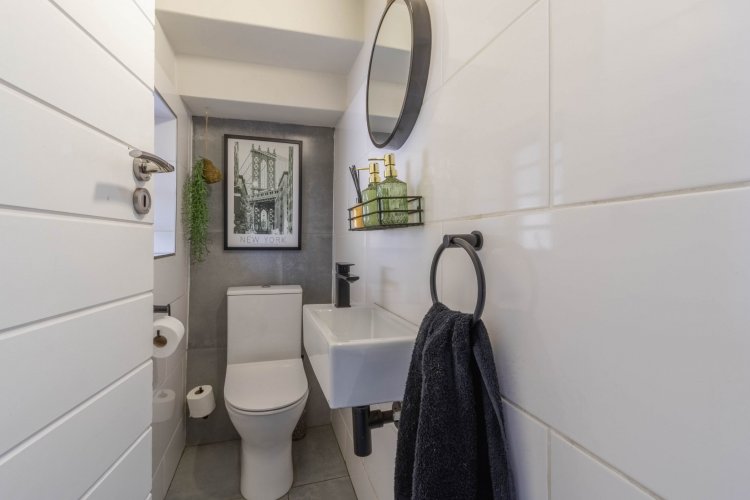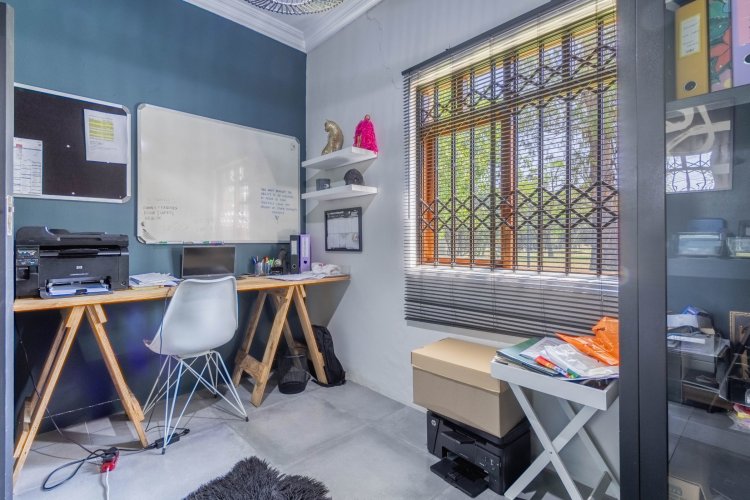 A large multipurpose room is currently being used as a home office — ideal for remote work, a gym, or even a playroom. For added convenience and comfort, this home features a guest toilet and Trellidoors on all windows and doors for enhanced security. The property is also fitted with prepaid electricity, offering ease of management and control.