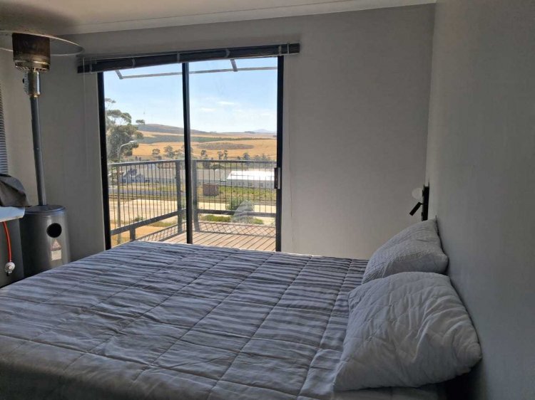 This newly built 2 bedroom en-suite home encapsulates charm, peace, a gorgeous flow and THE most amazing views over mountains, farmlands and vineyards which can never be obstructed. O yes, and you can view the steam train perfectly from your deck too when it chugs by. The sunny lounge and open plan kitchen separates both nicely sized bedrooms.