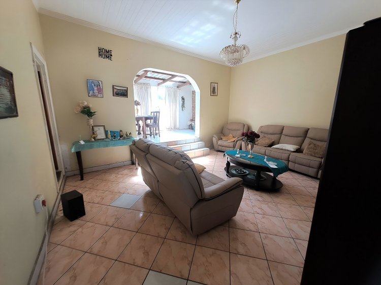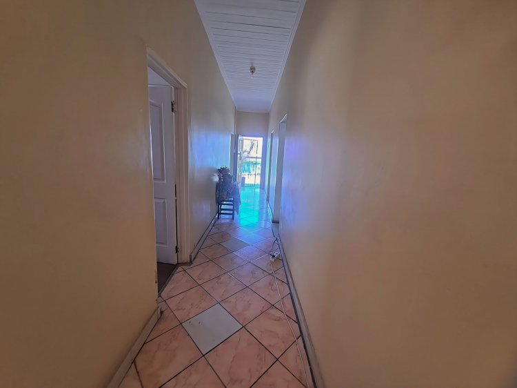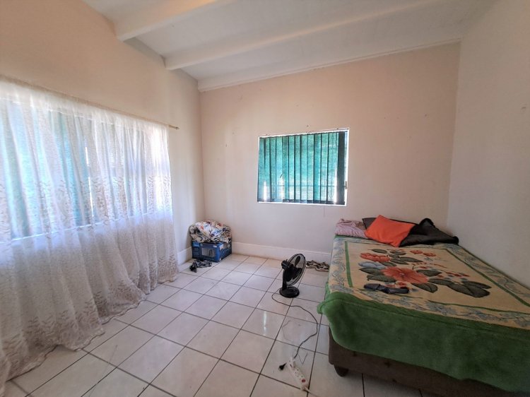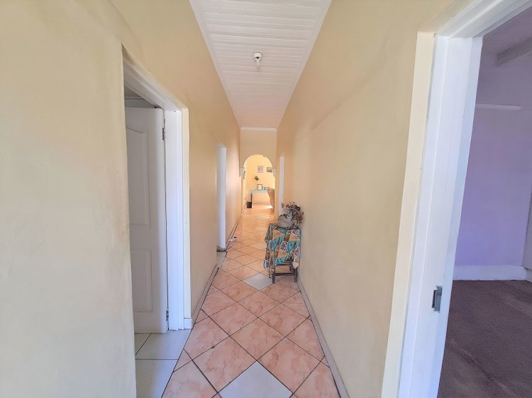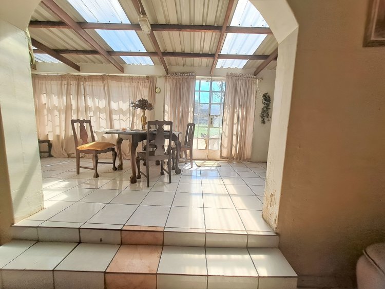 The property features a fully enclosed yard (note: palisade fencing needs attention) and a welcoming front porch that sets the tone for its traditional appeal. Inside, a long tiled passage leads to three bedrooms, all with built-in cupboards. The carpets throughout need replacement, giving you the chance to refresh the home's look to your own taste.
