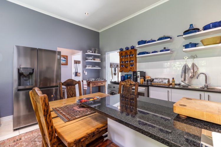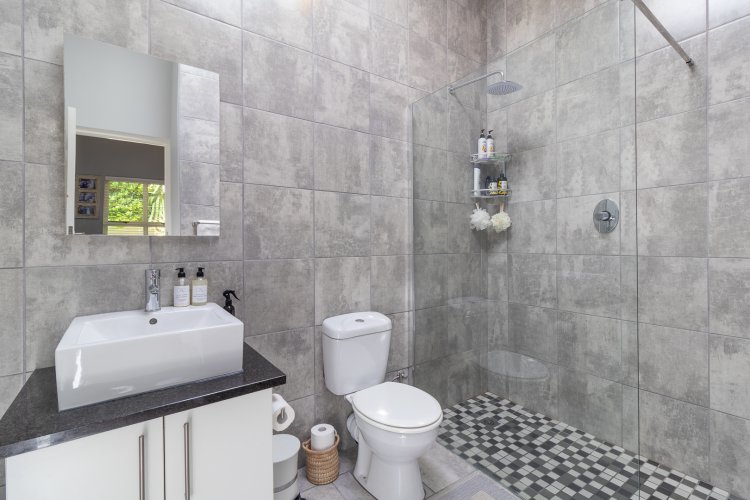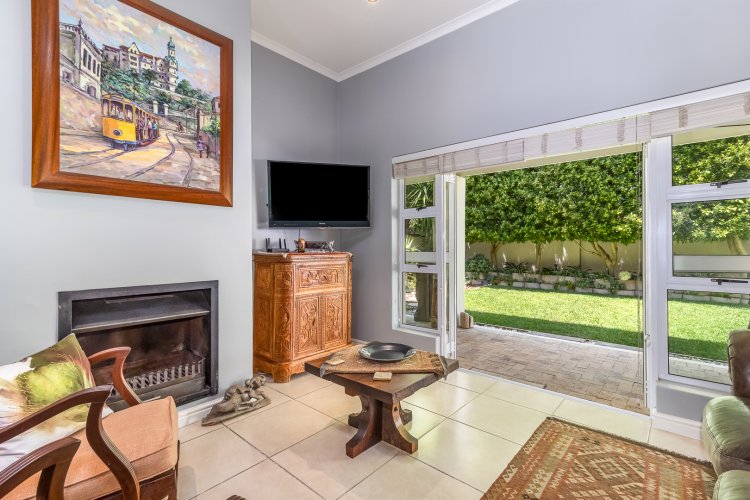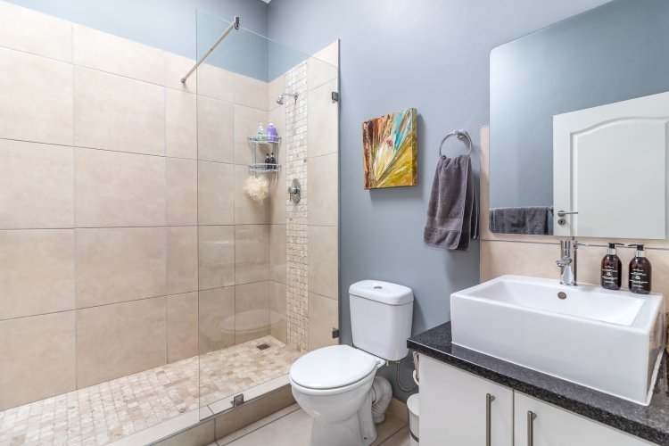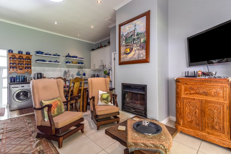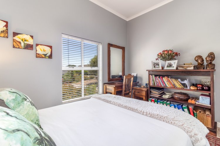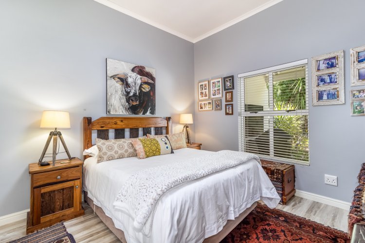 Both bathrooms feature stunning skyroofs, flooding the spaces with natural light and creating a warm, tranquil atmosphere. The open-plan living, dining, and kitchen area provides a cosy yet stylish space for everyday living and entertaining. Equipped with solar panels and an inverter system, this home ensures energy efficiency and peace of mind during load-shedding. Outside, a beautiful low-maintenance garden completes the picture — perfect for relaxing or enjoying the peaceful surroundings of the estate.