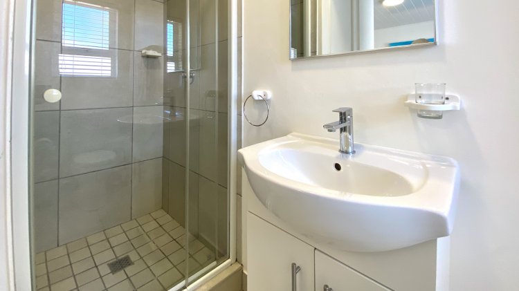 There are three comfortable bedrooms with built-in cupboards. The main bedroom features an ensuite bathroom, while the remaining two bedrooms share a full family bathroom.