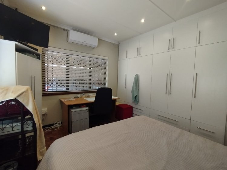 Each bedroom includes built-in cupboards, with air conditioning for year-round comfort. The home features a mix of tiled and parquet flooring, adding both warmth and character.