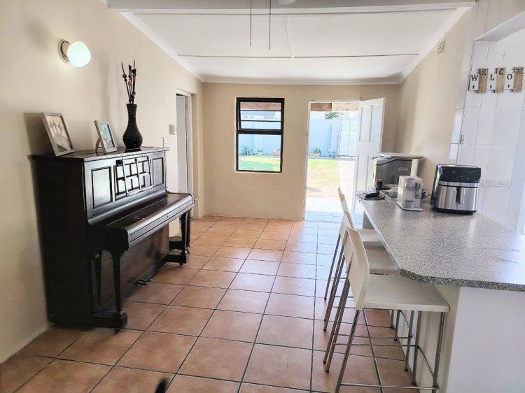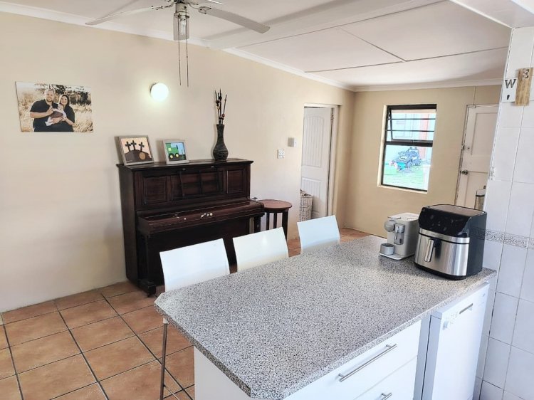 Situated just 800 meters from the beach in the charming village of Kidds Beach, this distinctive family home combines comfort, spacious living, and excellent income potential. It boasts three bedrooms—including two generously sized rooms—and a neat well sized kitchen with a gas stove and electric oven. The main bedroom features a private en-suite, while a large main bathroom serves the rest of the house. The expansive lounge opens onto an outdoor patio with a built-in braai, perfect for summer gatherings, complemented by a second undercover braai area for year-round enjoyment. Additional benefits include a large outbuilding convertible into a garage, a separate laundry, and an outside bachelor’s pad ideal for Airbnb or extended family. Fully walled and secured with an electric gate, the property offers both privacy and peace of mind.