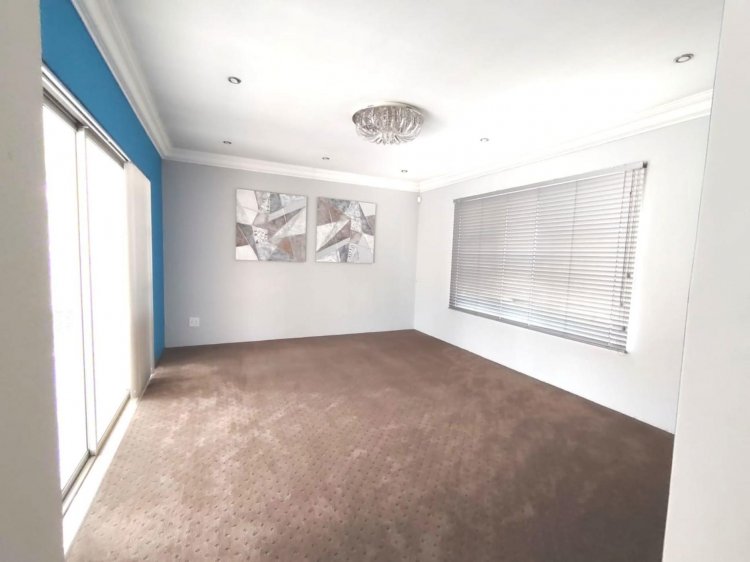 The home offers 3 bedrooms, all with built-in cupboards, and sliding doors with a view. The stunning master bedroom is a peaceful retreat with natural light from the sliding door opening to the backyard.