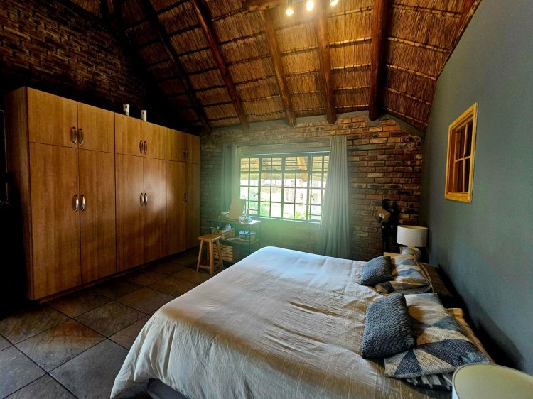 Step outside, and you'll find a separate entertainment area complete with a built-in braai and bar—ideal for hosting guests or enjoying quality time with loved ones. The addition of a pool and fire pit creates the perfect setting for a relaxed evening, whether you're having a braai or enjoying sundowners with friends and family.