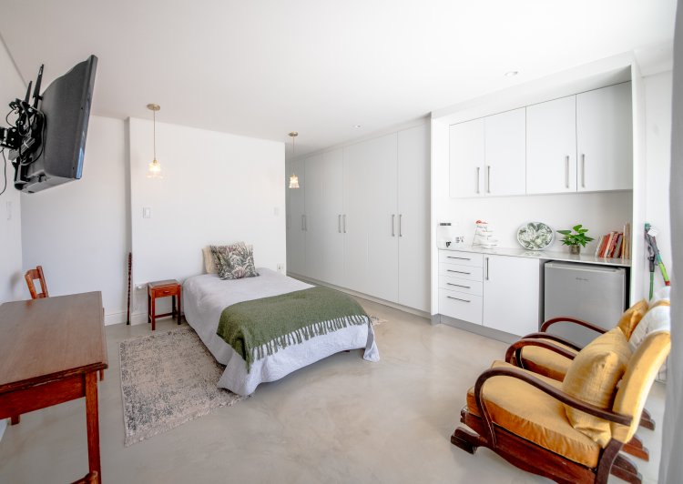 The lounge opens onto a large weather protected veranda with its own built in pizza oven and barbeque braai. Envision yourself enjoying your favourite whilst watching the little buck coming to graze and the abundant birdlife settling down for the night. Morning coffee is a meditation on its own gazing across the farmlands to the mountains and dams.