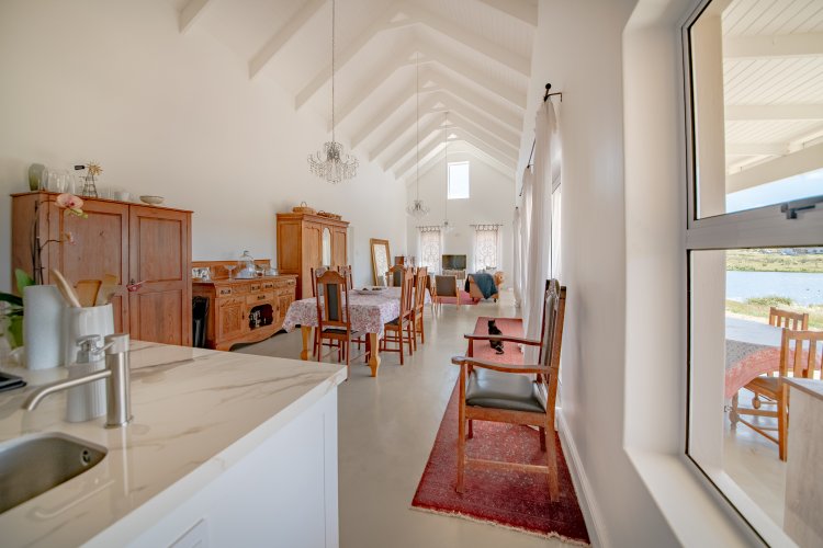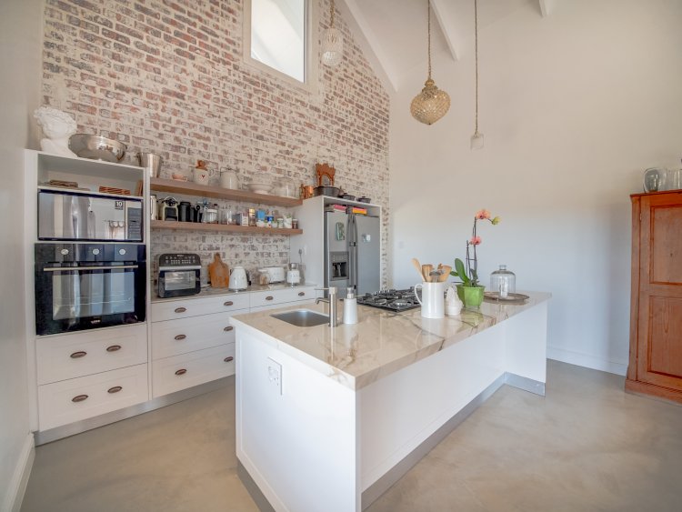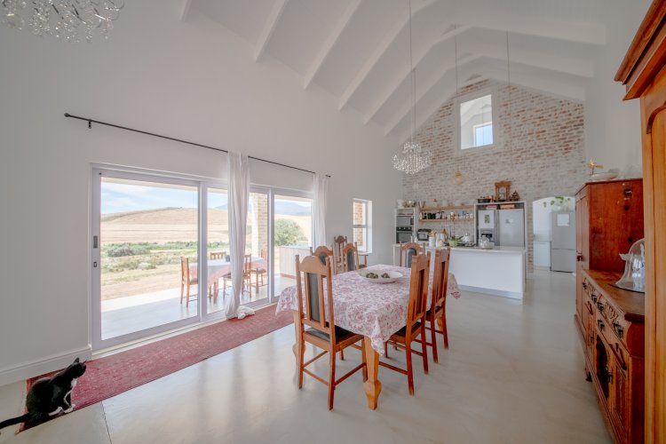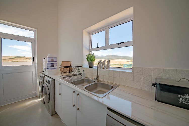 This spacious and aesthetically beautiful home will appeal to the discerning buyer who appreciates the finer things in life. On entering your eyes are drawn to the incredible views from the elegant and inviting lounge. Mountains, fynbos, dams and farmlands leading down to the Botriver greet you. The open plan kitchen is a chef's delight - I need to say no more. This leads to a hidden scullery and wash room and private service courtyard.