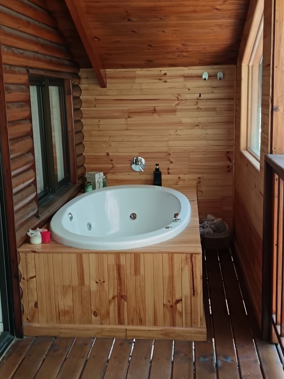 Upstairs is a fireplace and there are two additional bedrooms and a bathroom. A jacuzzi on the balcony provides a delightful spot to relax and soak in the scenery.