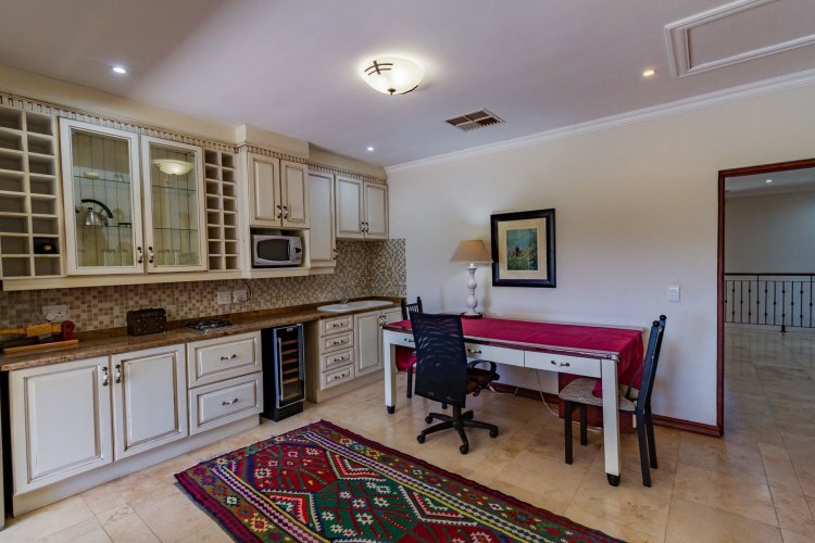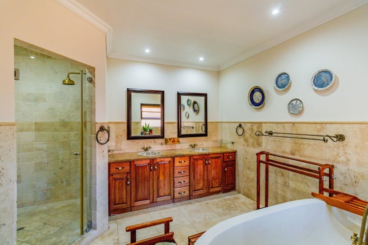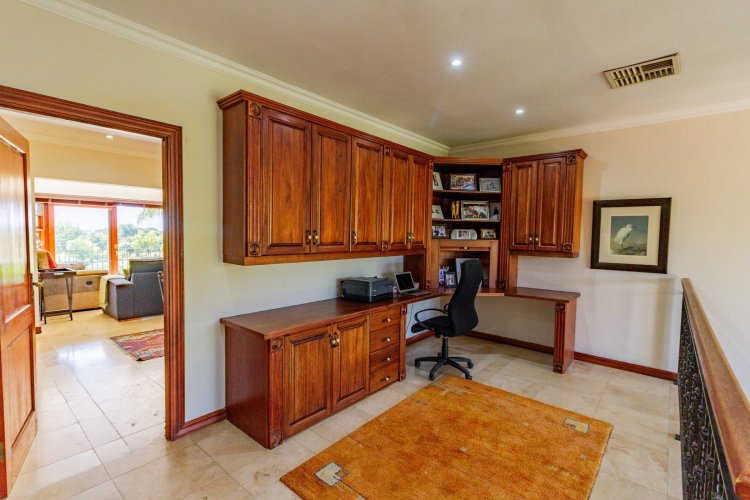 Upstairs, a study and a spacious family room with a kitchenette provide additional living space, while the large main en-suite bedroom offers views of the inland lake and Magalies mountains. The perfect tranquil setting any owner can dream of.